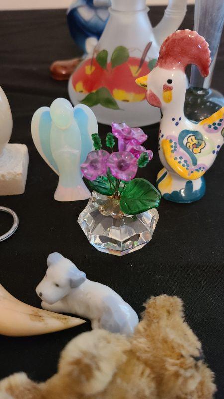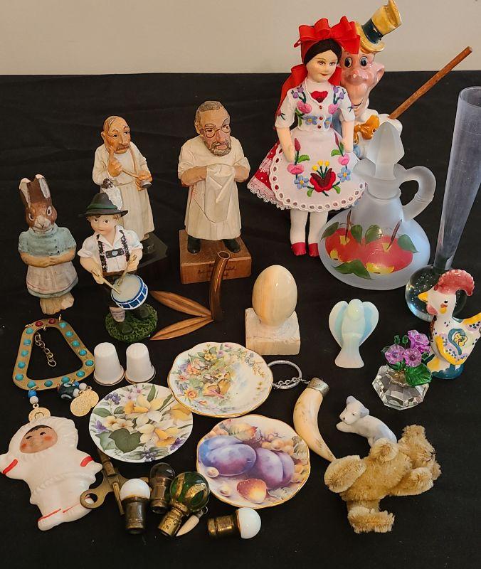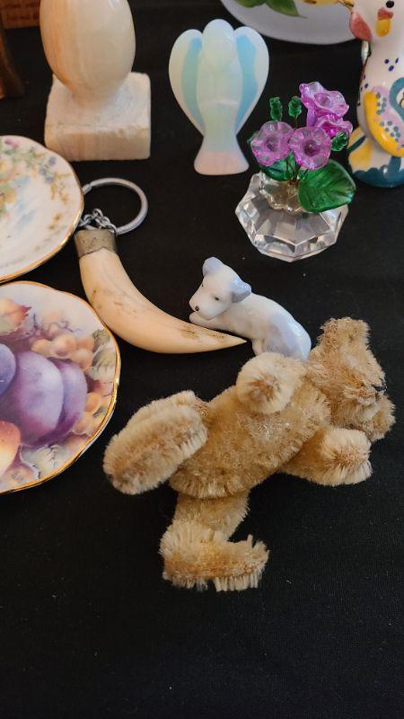 Nice lot of vintage collectibles. Mohair tiny teddy, clock key, crystal, marble and more! Please see all pictures for content of the lot, condition of the items, and makers marks. CLS