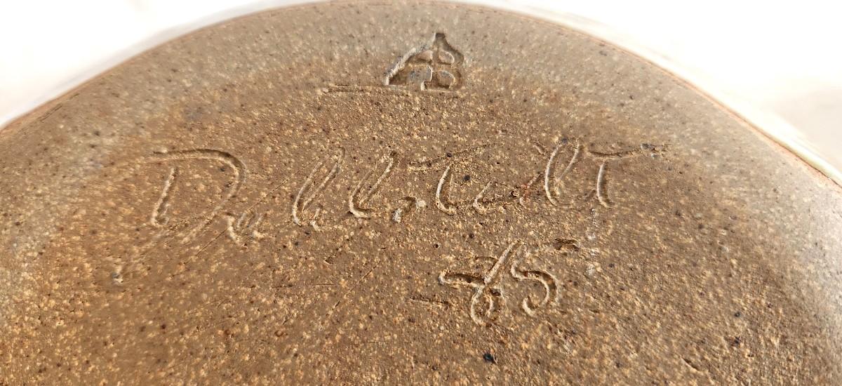 Studio pottery dish - dated 1985 - indistinguishable signature. Well executed, nice condition. 10" across.