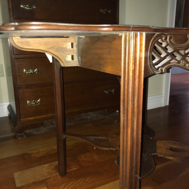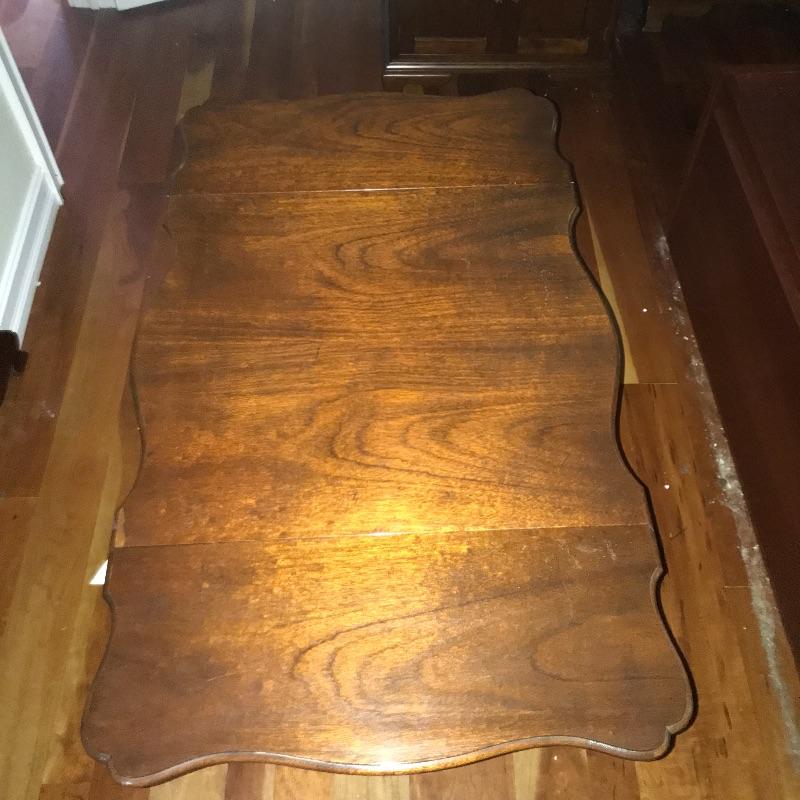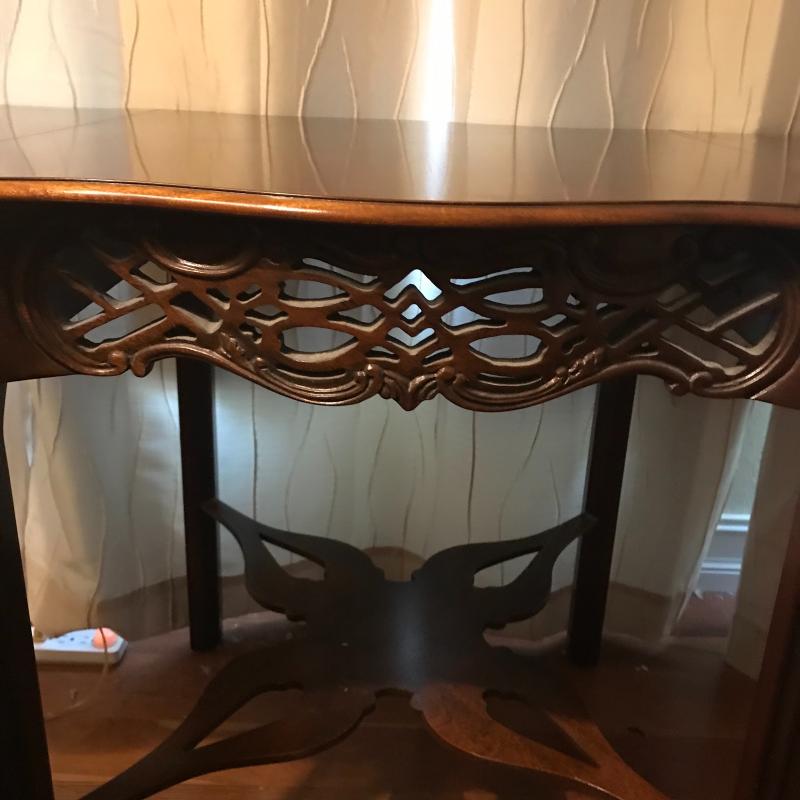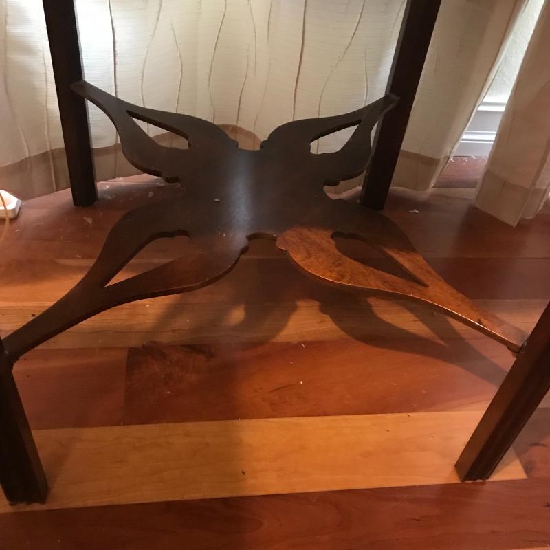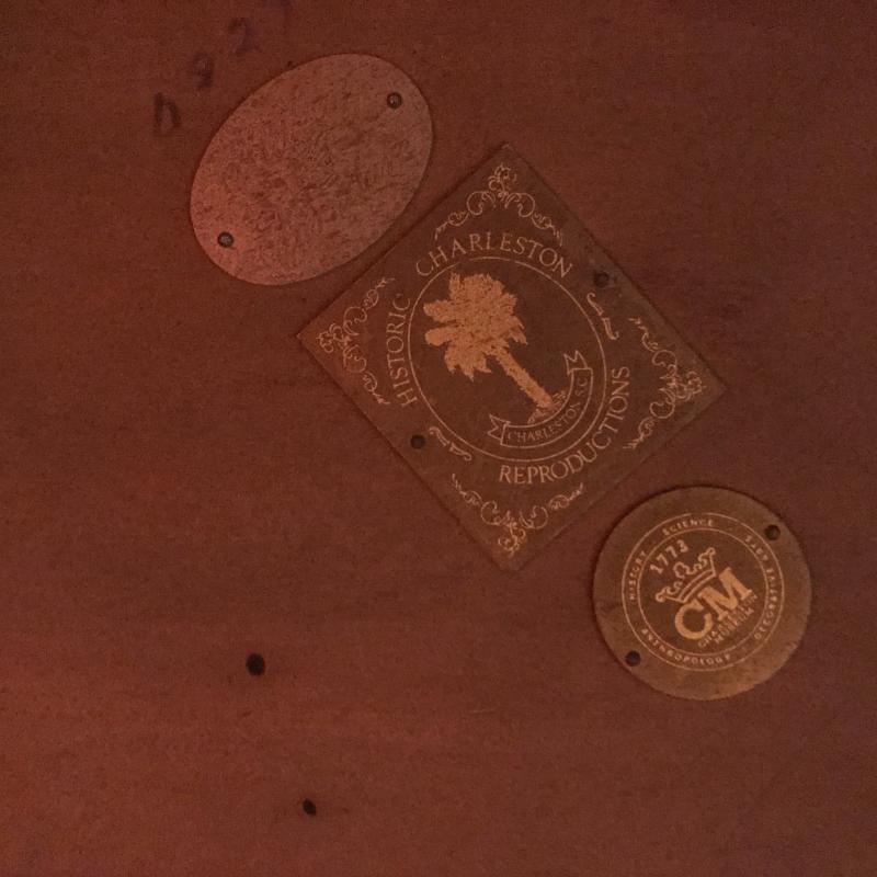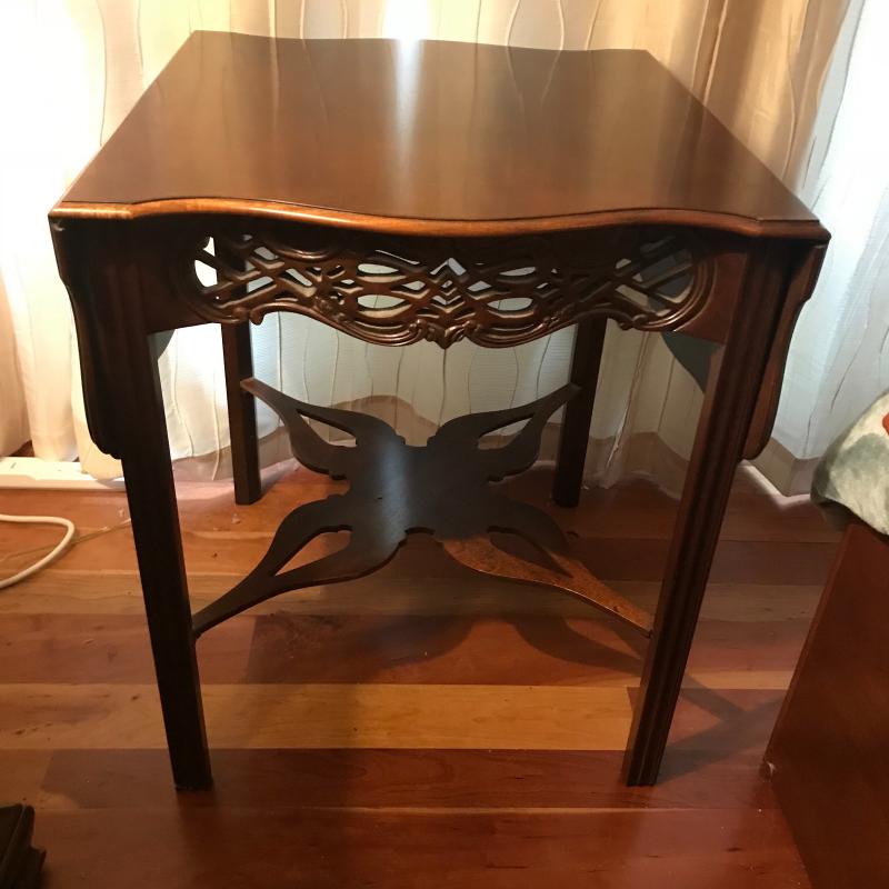 Historic Charleston Reproduction piece with two drop leaf sides and ornate bottom shelf and cutout design on front and back. Piece is in excellent condition and measures 24.5” x24” x28” with each lead adding aprox. 10” on each side to 44” total. Local pick up only.