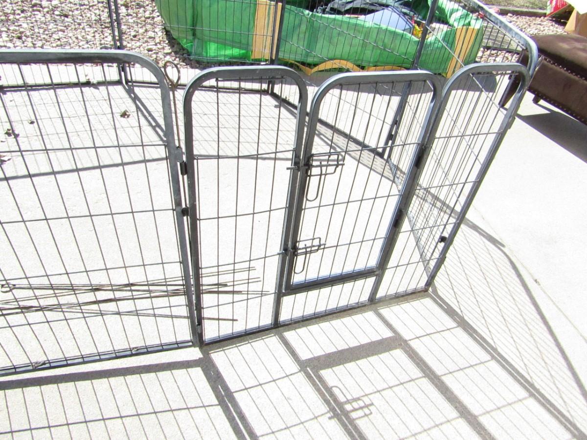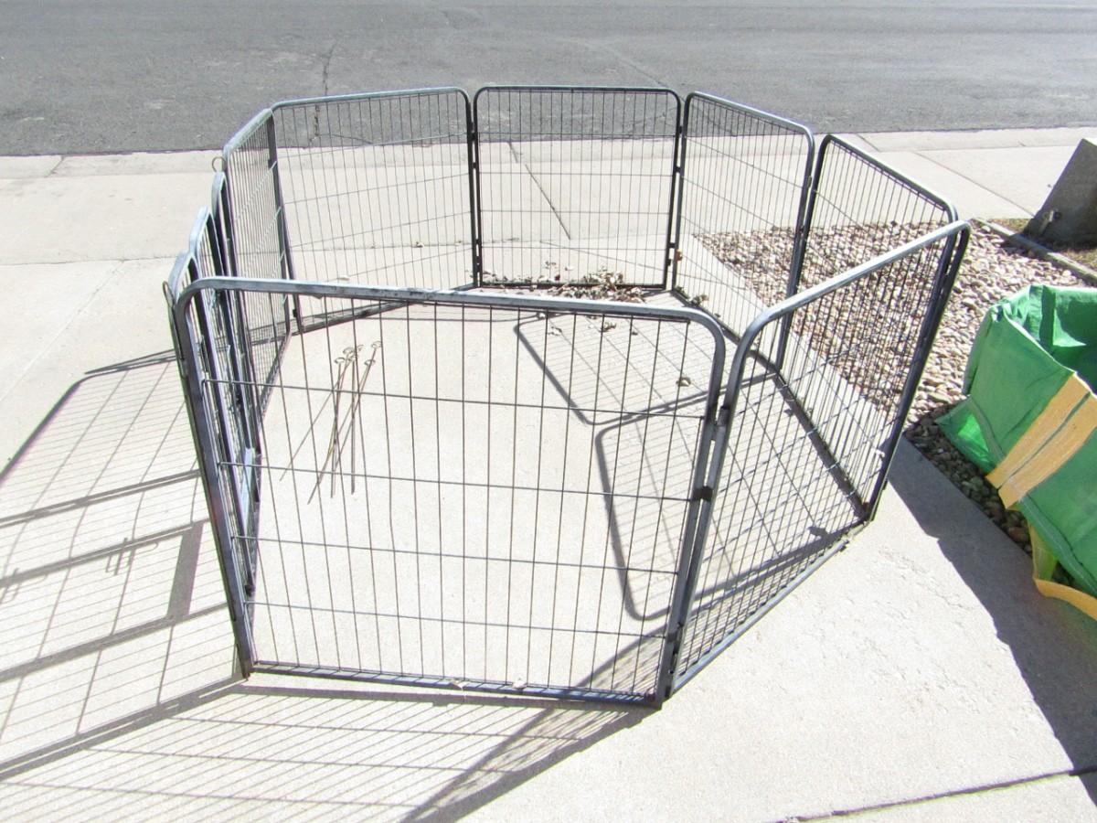 METAL PLAYPEN-LIKE ENCLOSURE WITH GATE TO ACCESS INSIDE.. EACH PANEL MEASURES 31X32