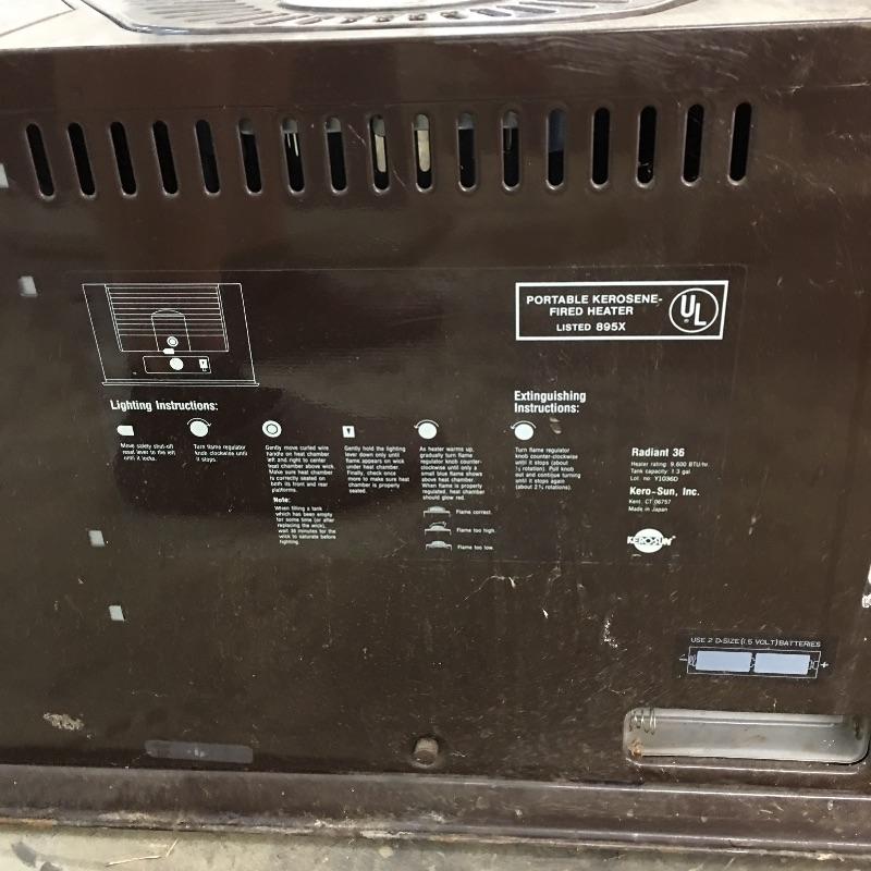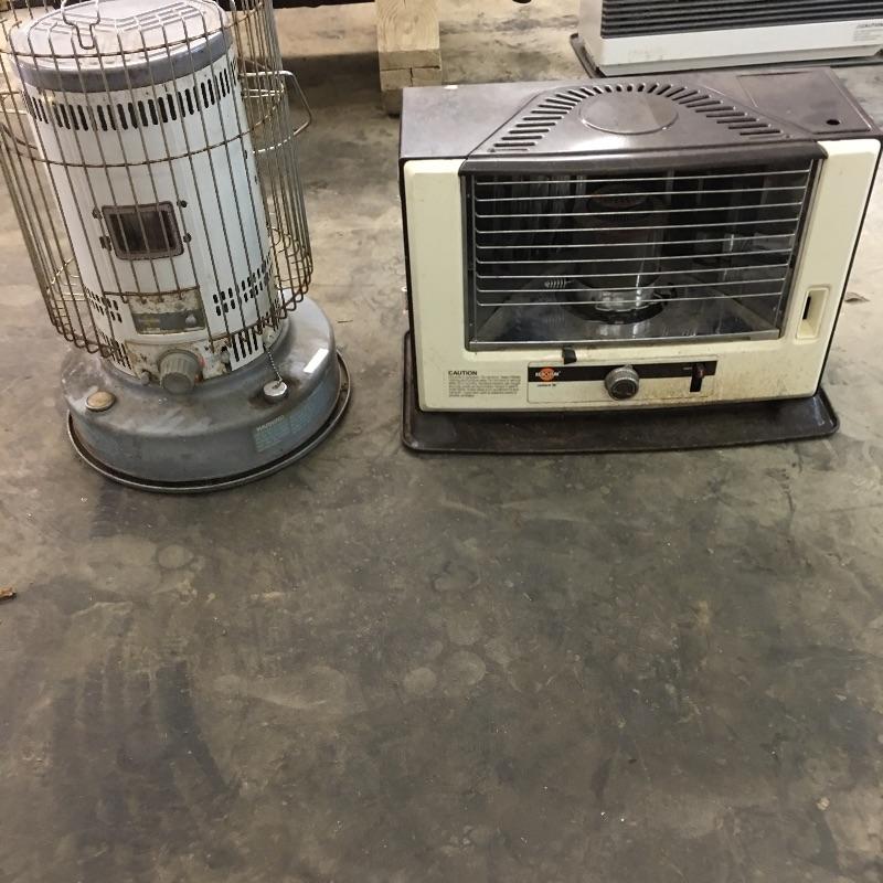 Keep yourself warm this winter with this pair of nice heaters. Heaters were not tested as we have no kerosene. Largest heater measures 12” x 25” x 17”.