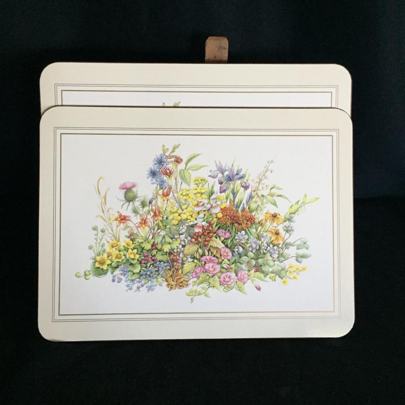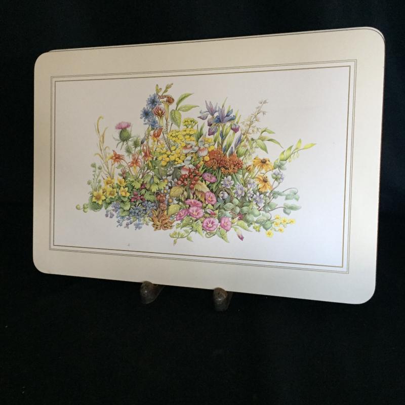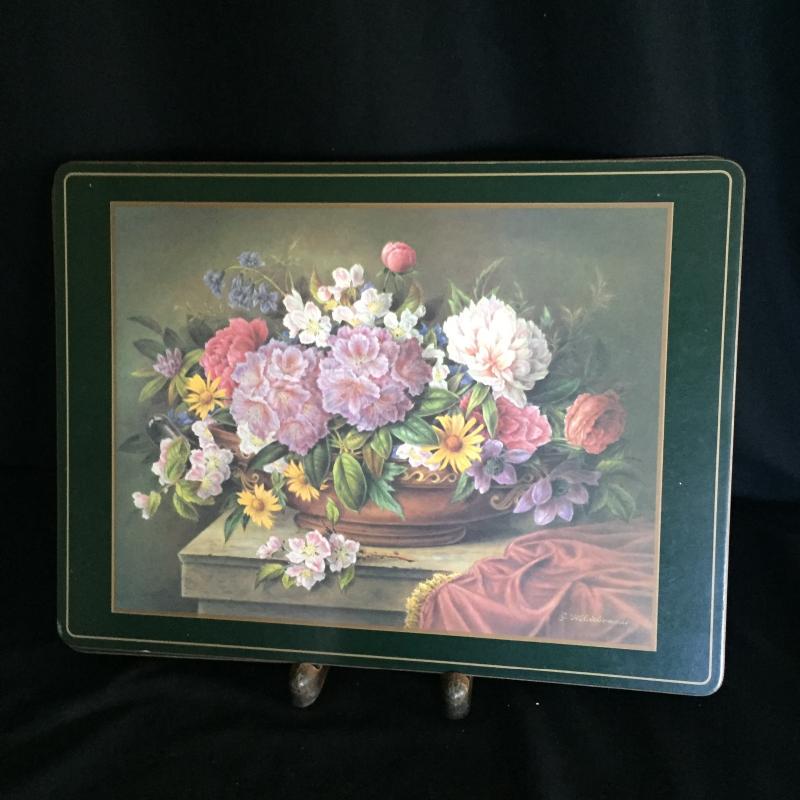 Three sets of Delightful Floral Placemats and Three Platters. Largest Placemats Measure 17” x 11.25”. Small set of Placemats has Six. Large sets of Placemats have Four.