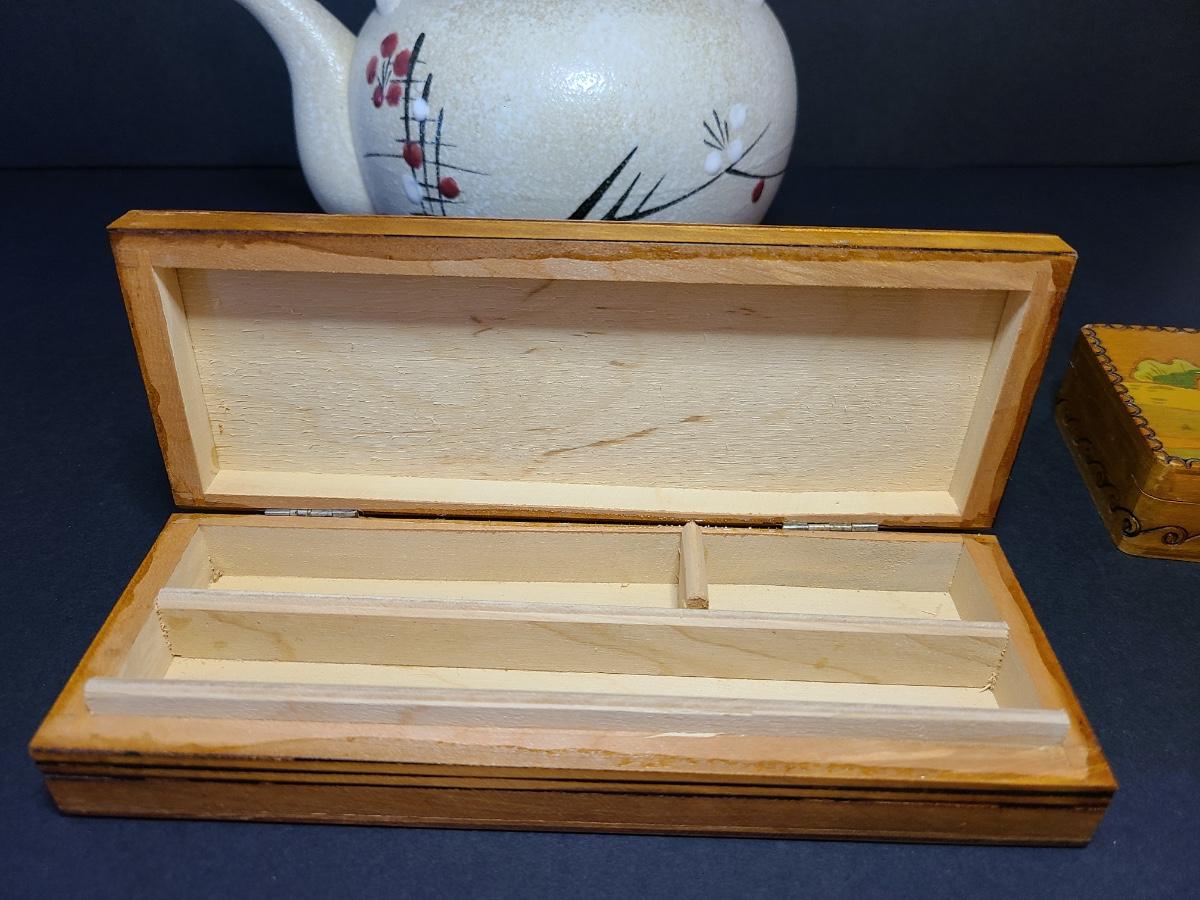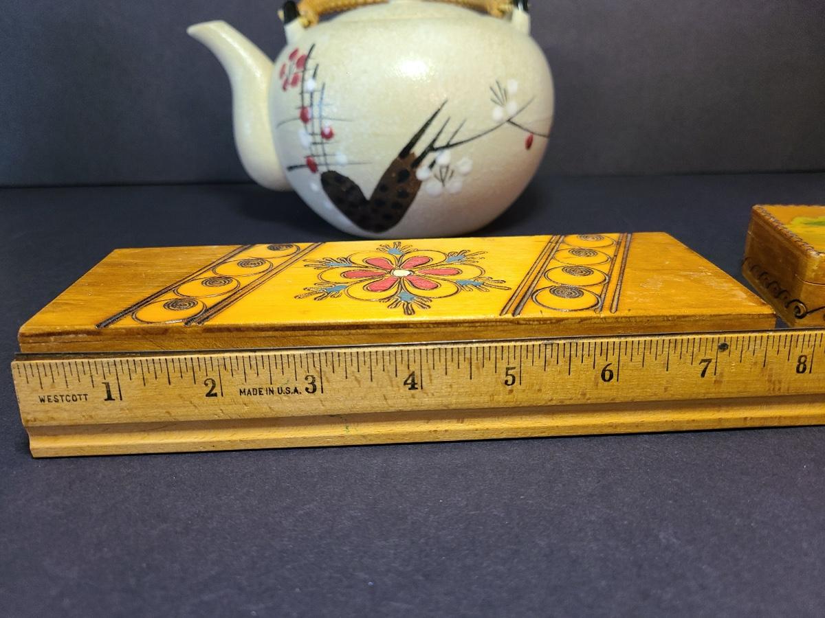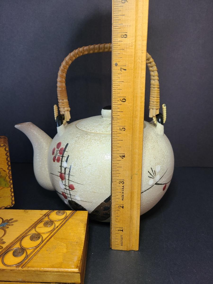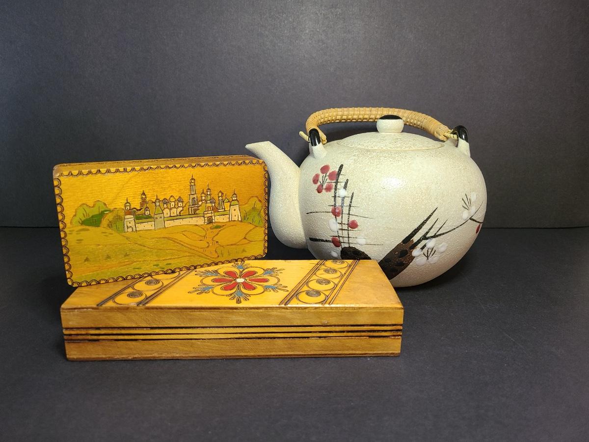 Lot 120: Pottery Teapot, & Wood Carved Boxes