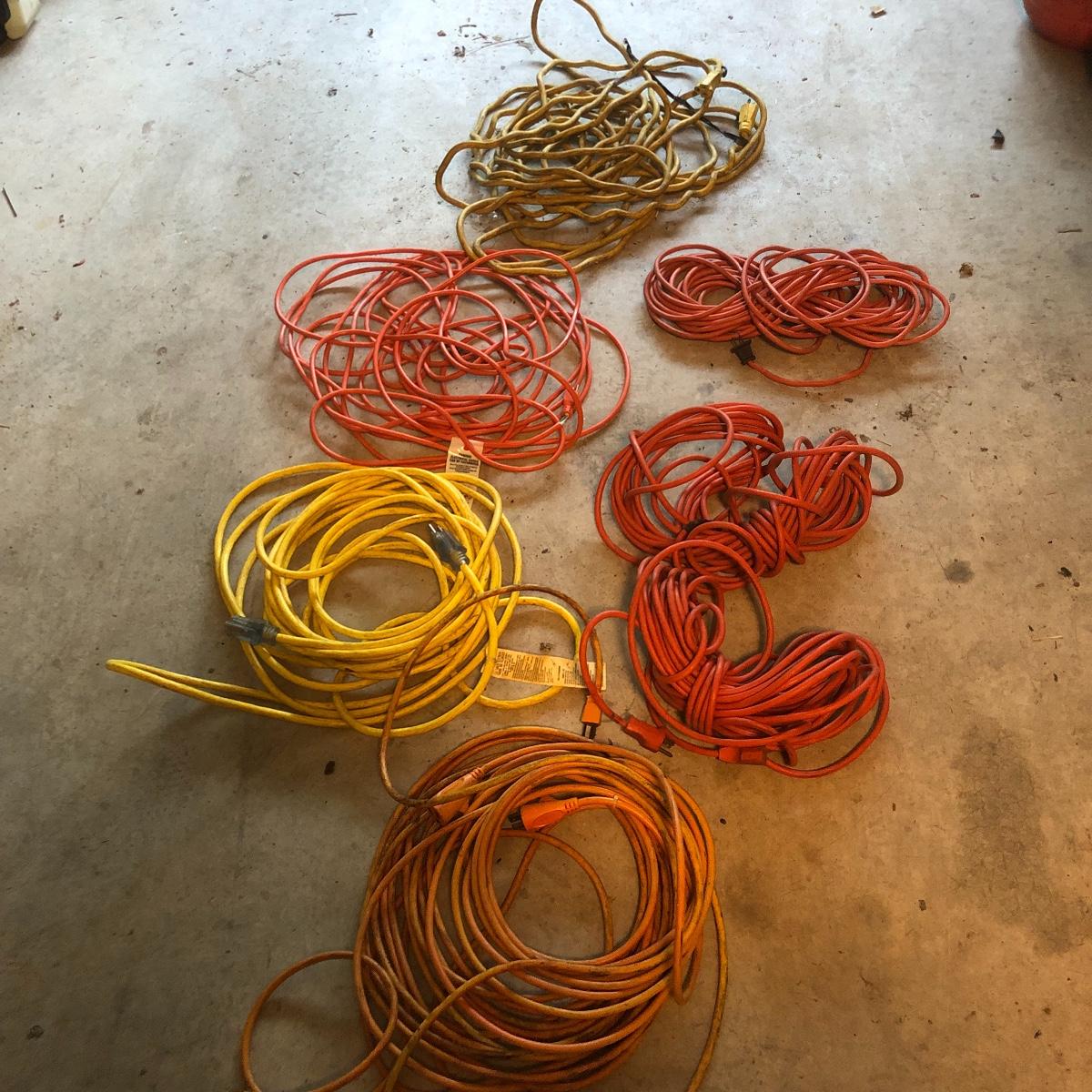 Extend your electrical reach with the collection of seven extension cords. A few of these cords aren’t in premium condition, see pics.