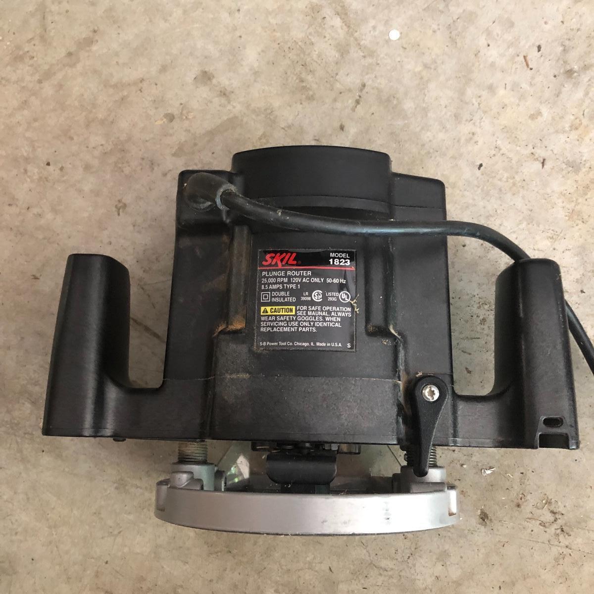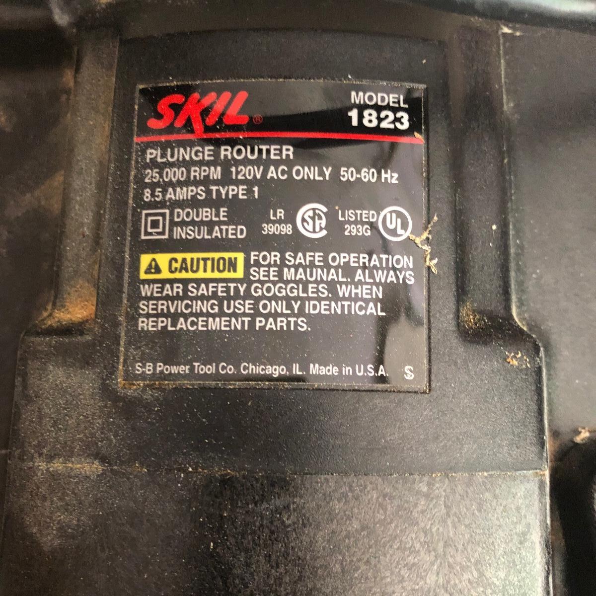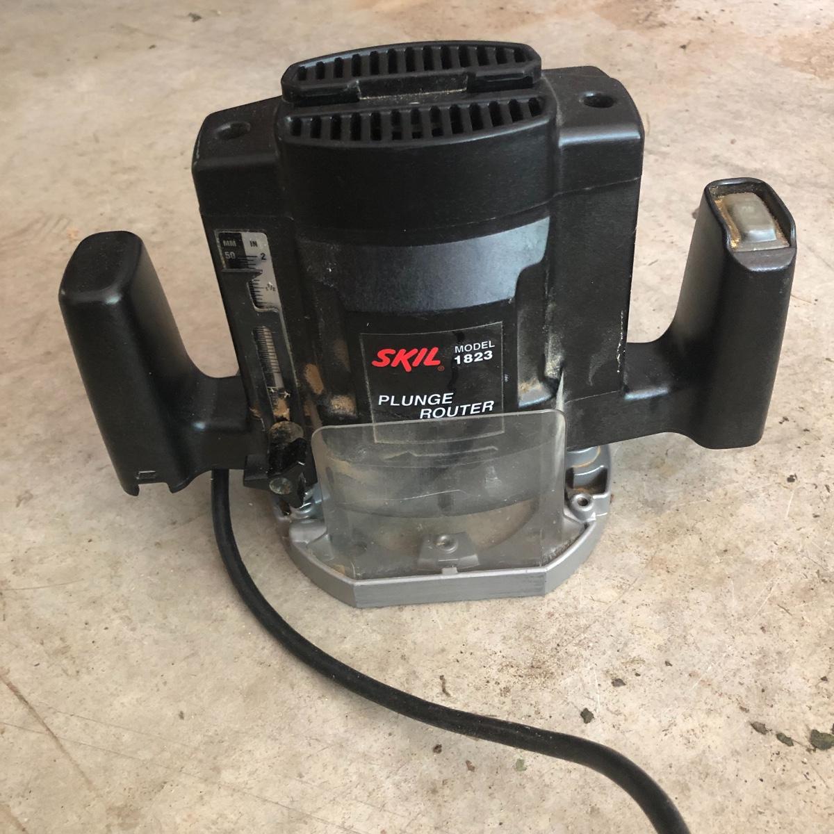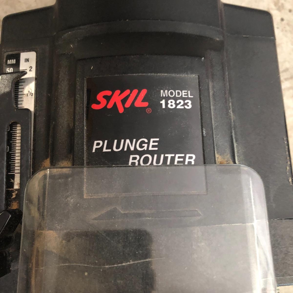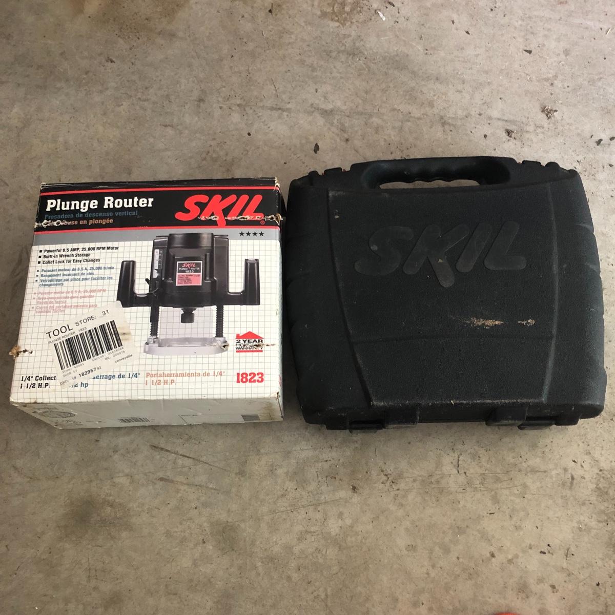Add this pair of Skil tools to your collection. Lot includes eighteen volt Skil drill with two batteries, charger and case and a Skil plunge router model # 1823. Both items worked when tested.