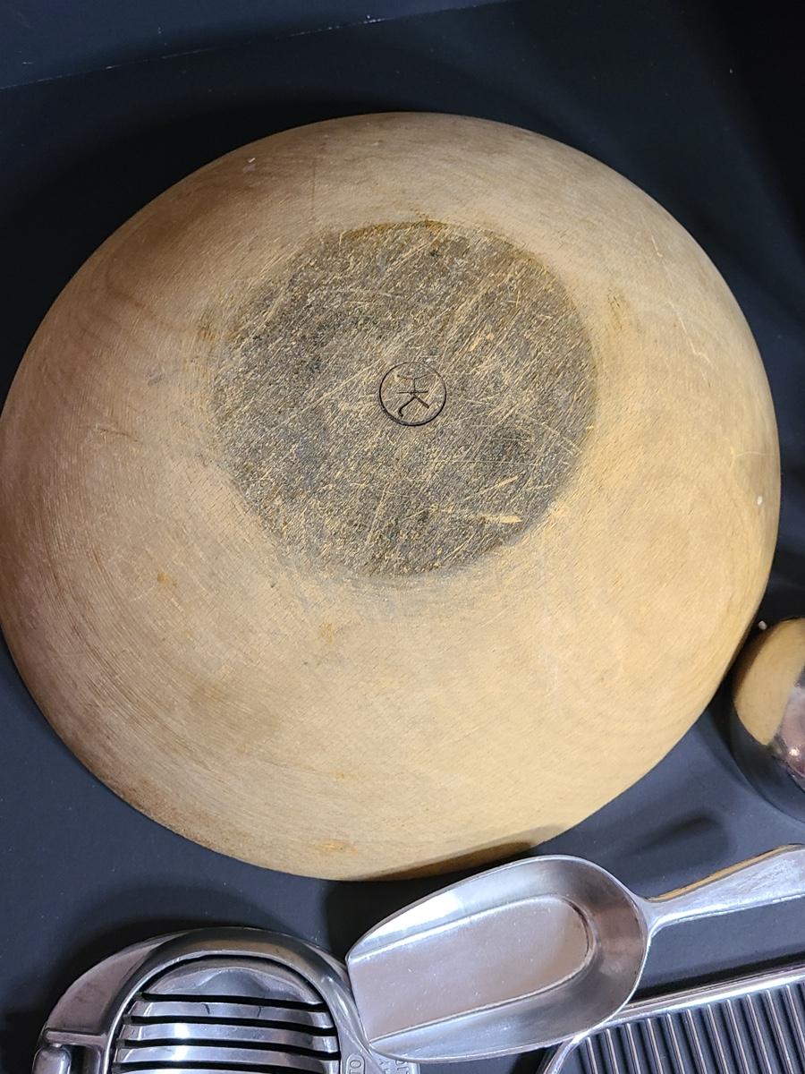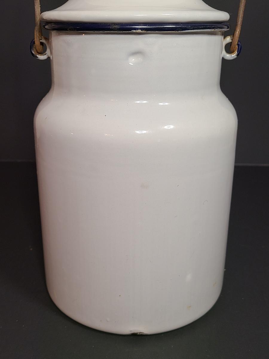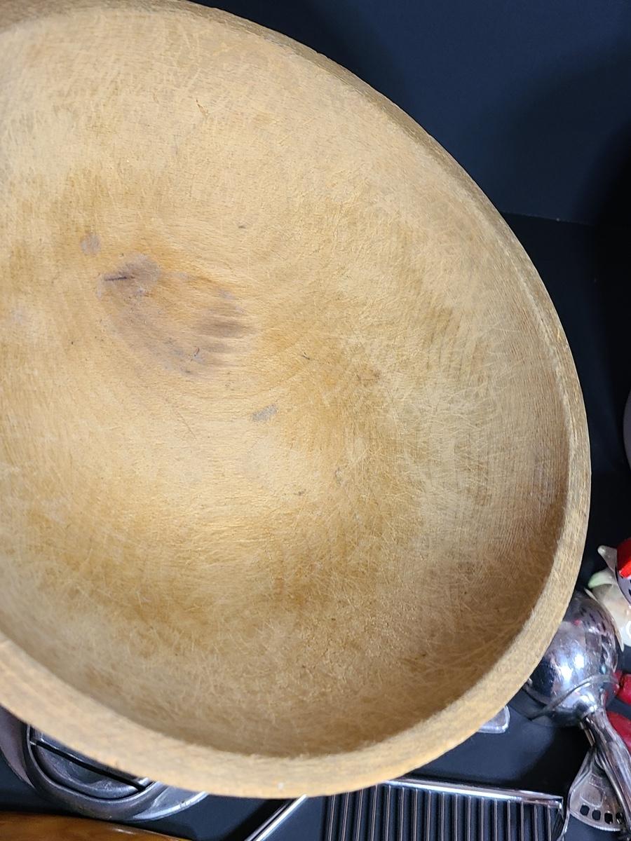 Lot 120: Vintage Enamel/Metal Milk Can, Wood Dough Bowl and More