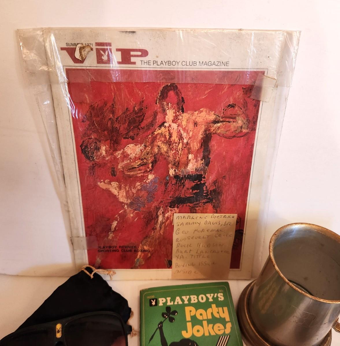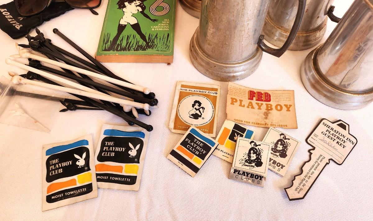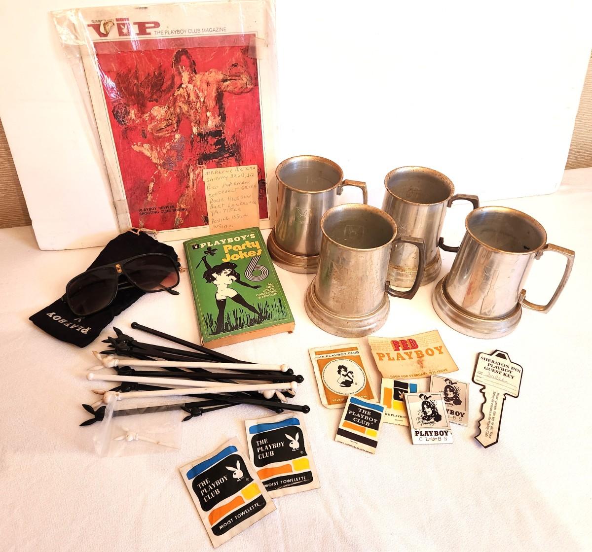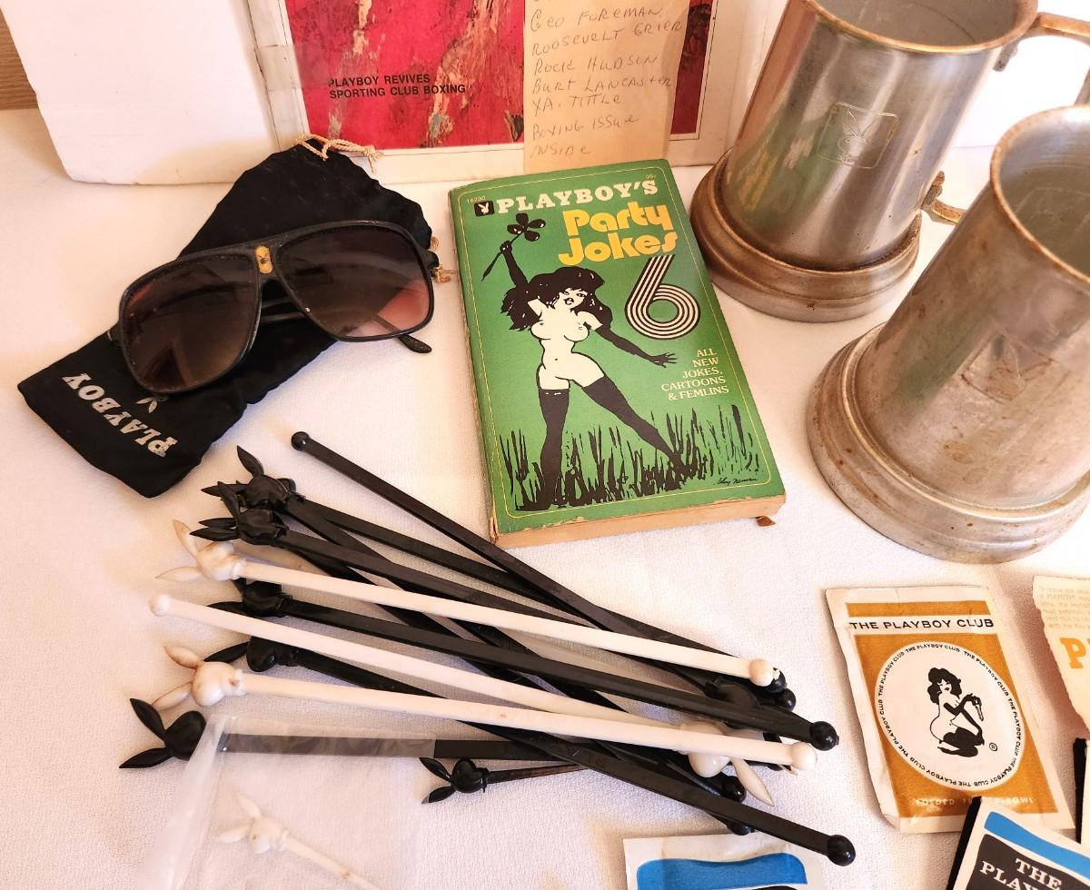 You get all you see here - Playboy Club Magazine, Tankards, Joke Book, drink stirrers, Sunglasses, Matchbook covers, more.