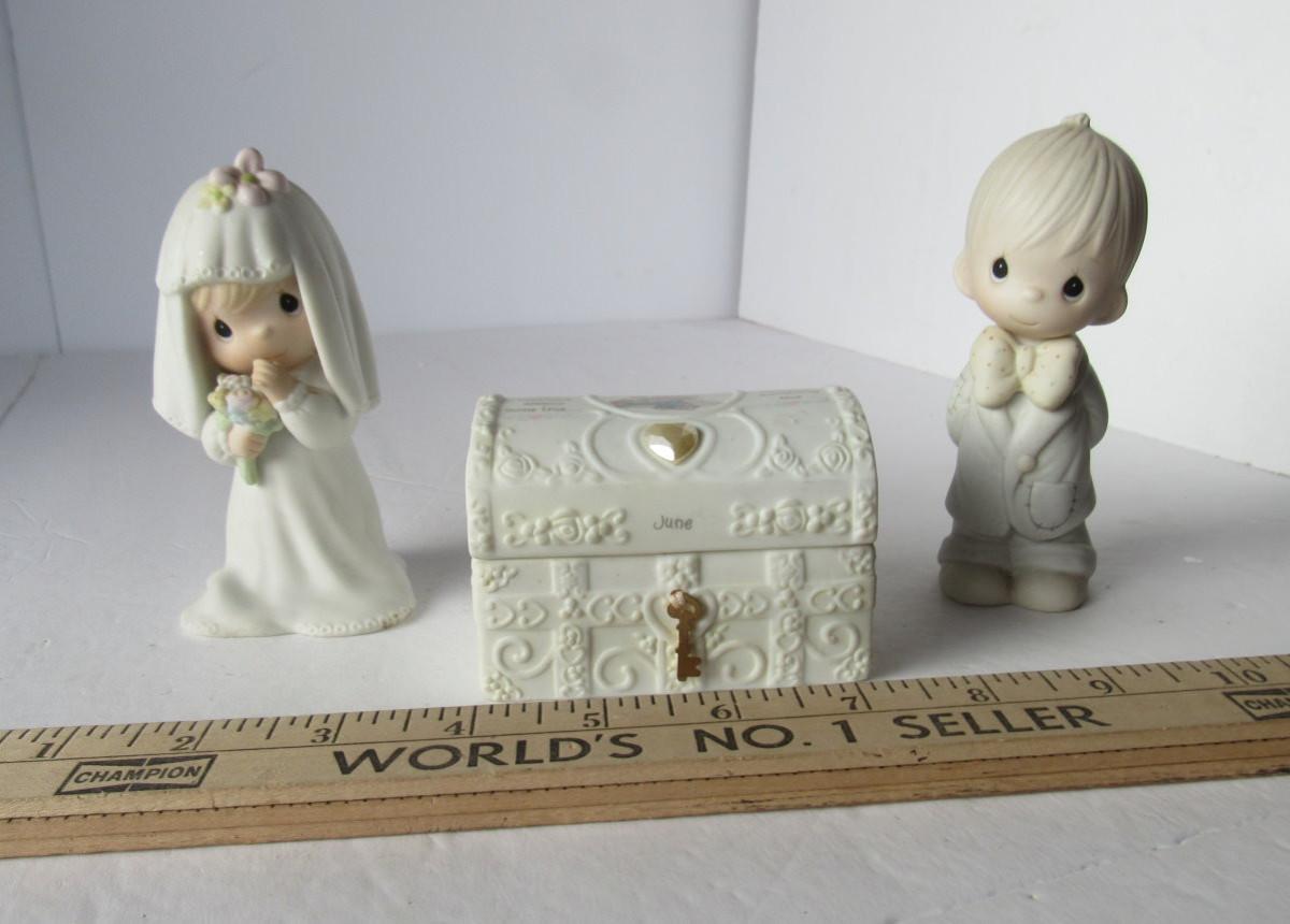 Lot 120: Older Precious Moments Wedding Figures and Trinket Box