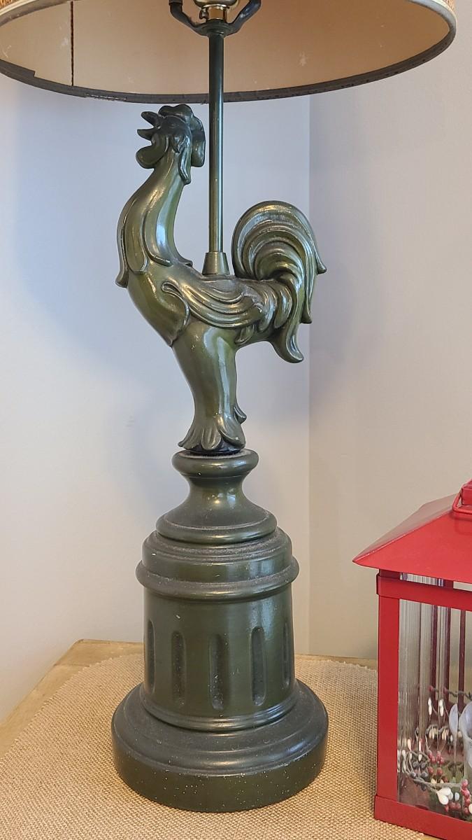 Lot 120: Vintage Rooster Lamp, Wood Cabinet/Bookshelf and More