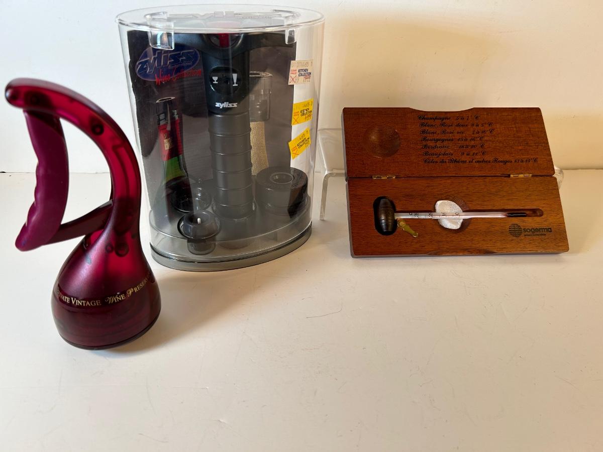 Includes Zyliss Wine Preservation Kit, Private Vintage Wine Preserver & a "POUR SERVIR A LA JUSTE TEMPERATURE" wine thermometer