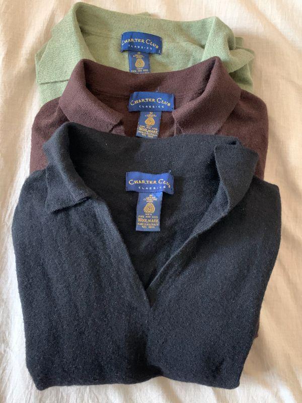 Pullover style collared wool sweaters from Charter Club Black, brown & green Size M