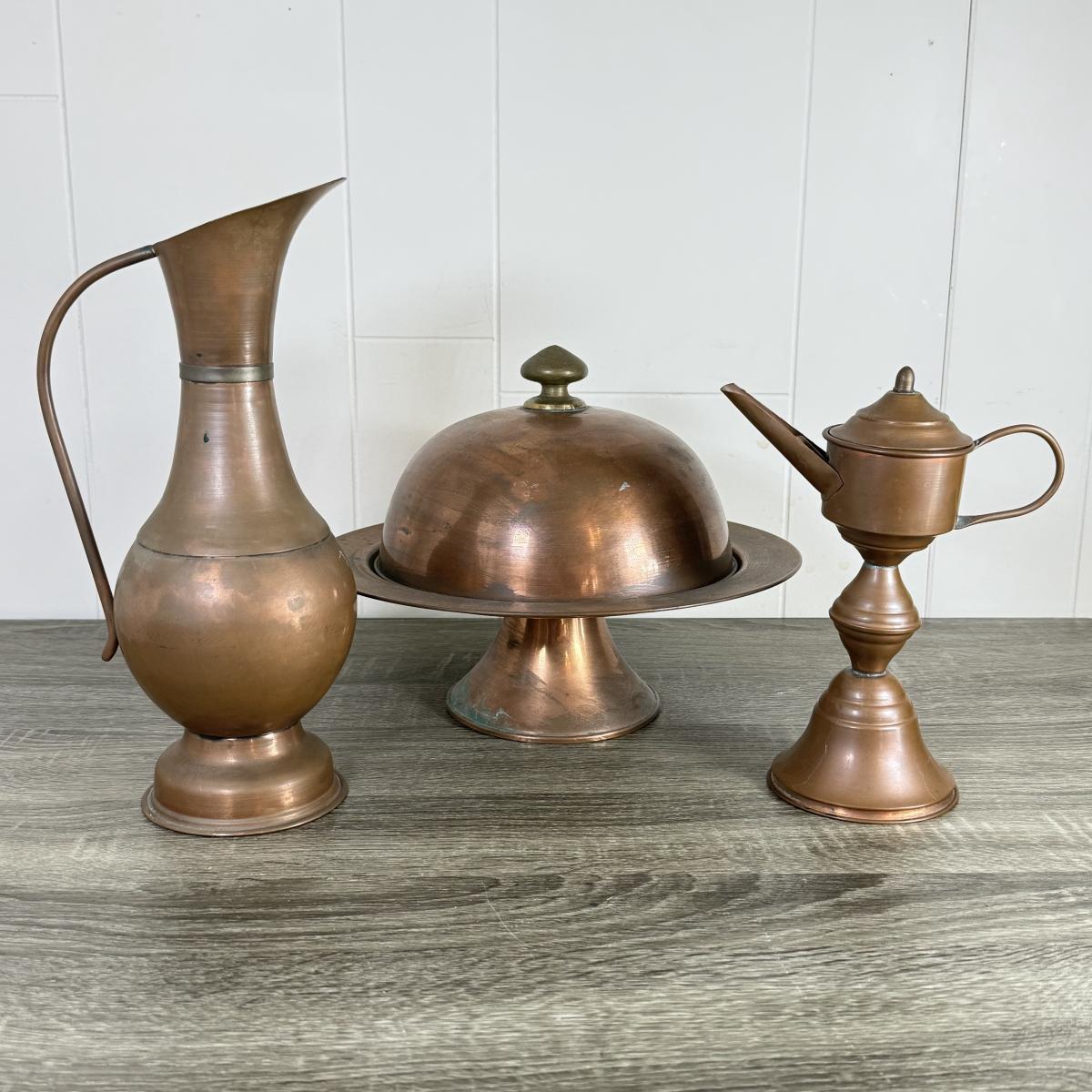 LOT 14K: Copper Ewer, Pedestal w Cloche & More