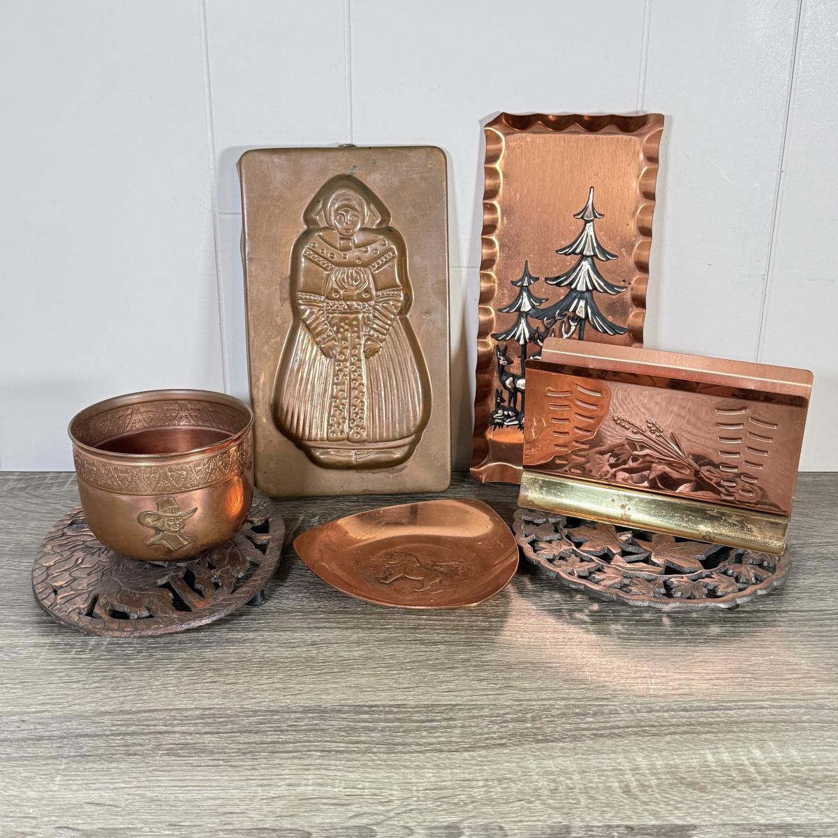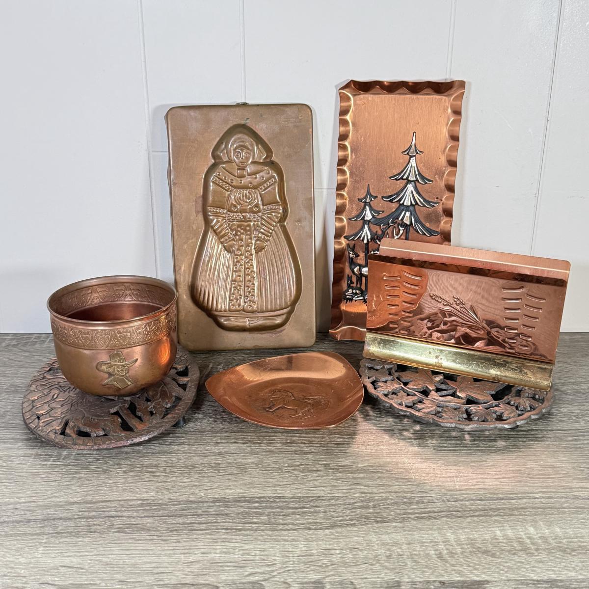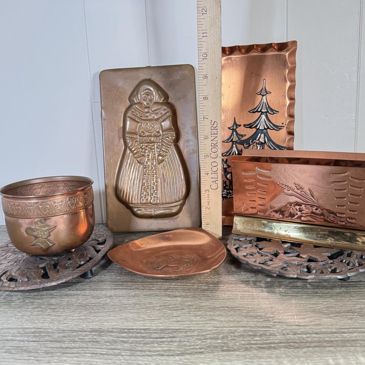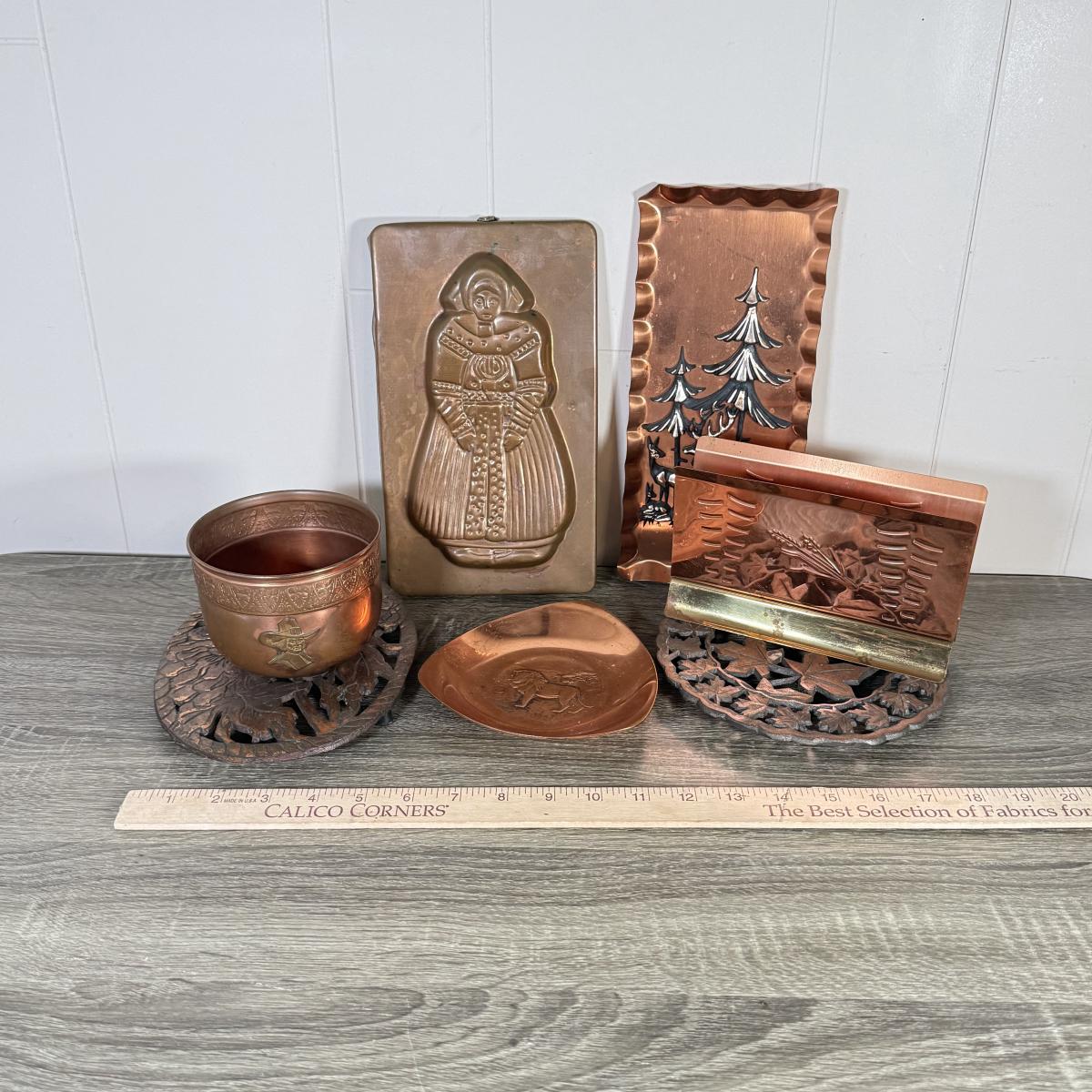 LOT 25K: Decorative Copper Collection: Trivets, Lion, Forest Scene & More