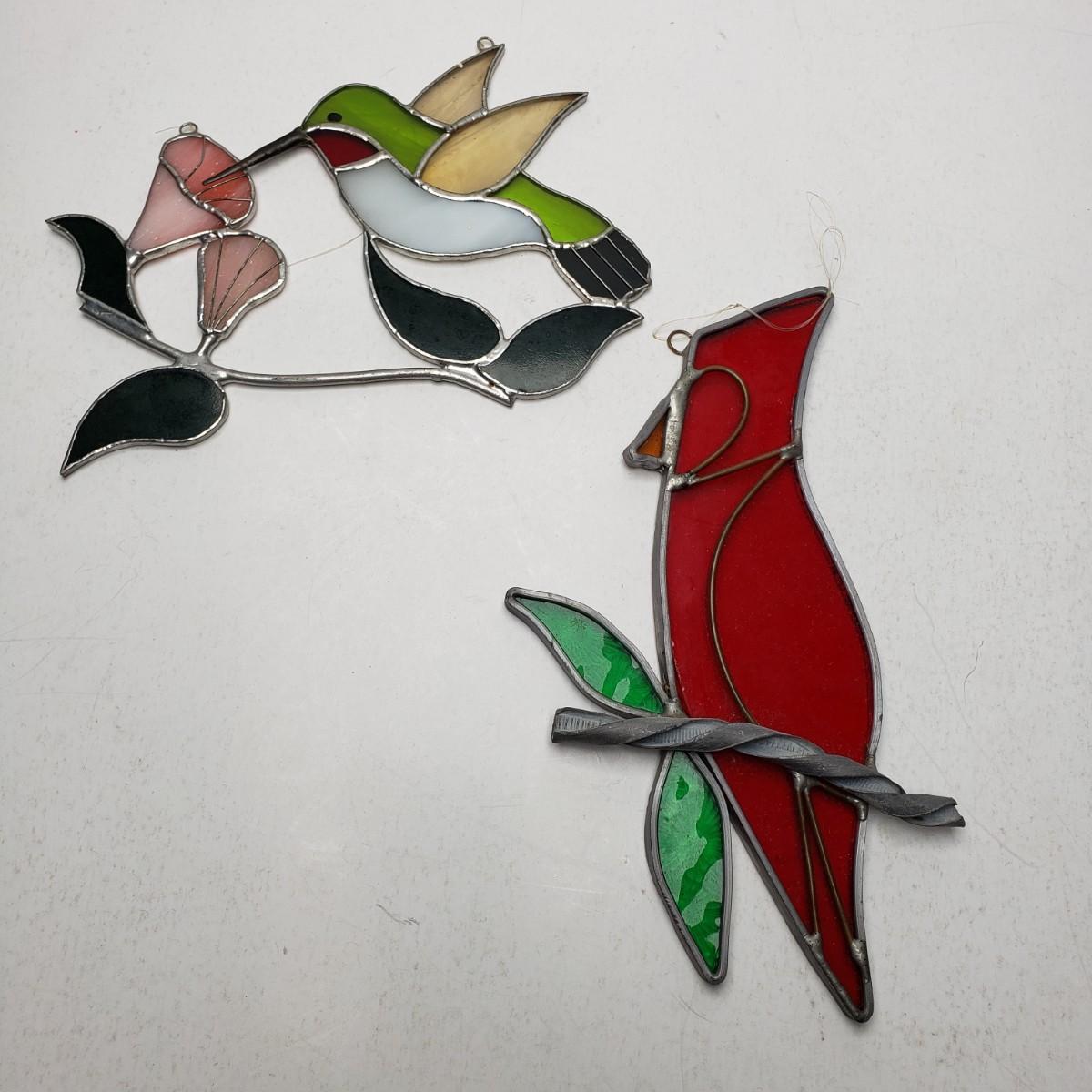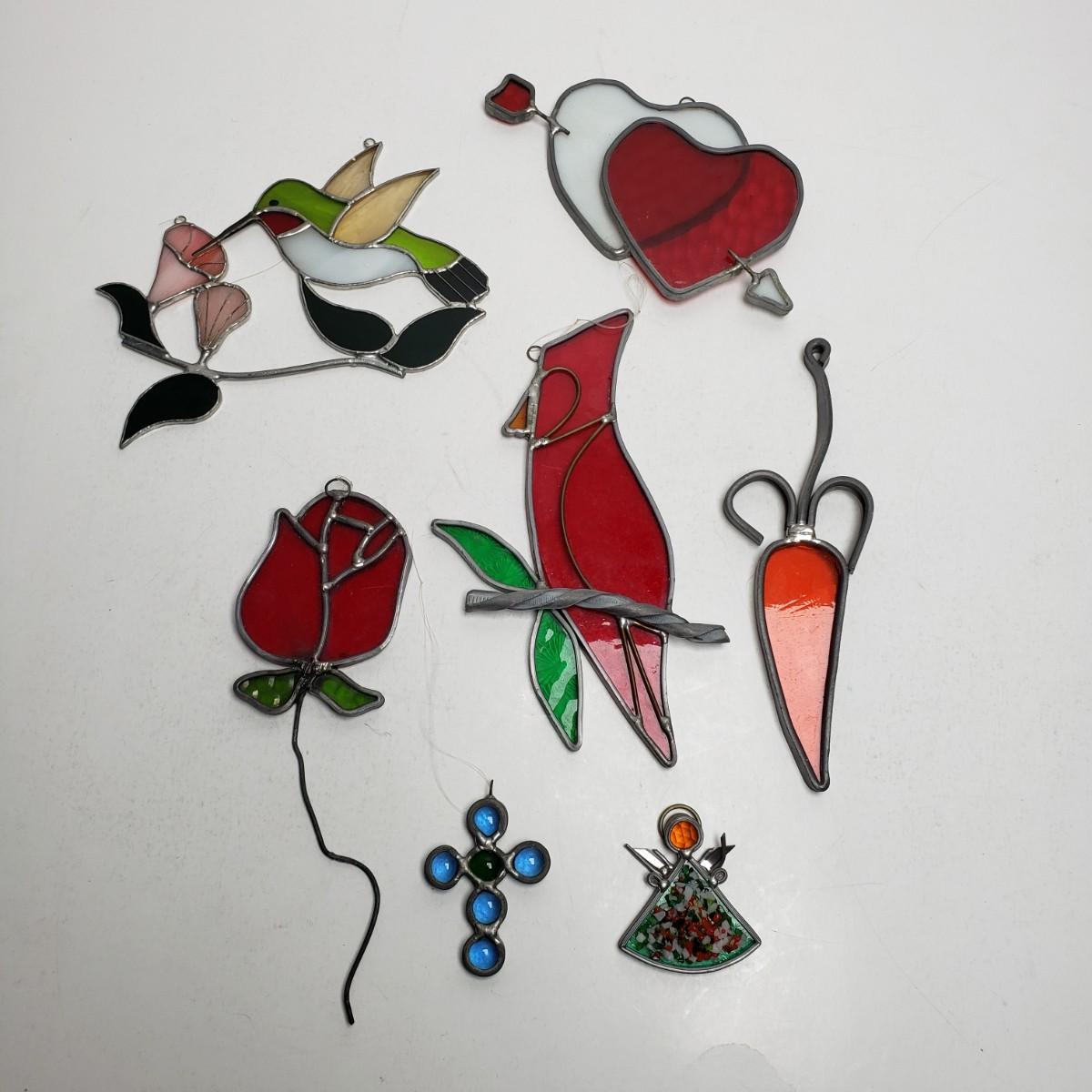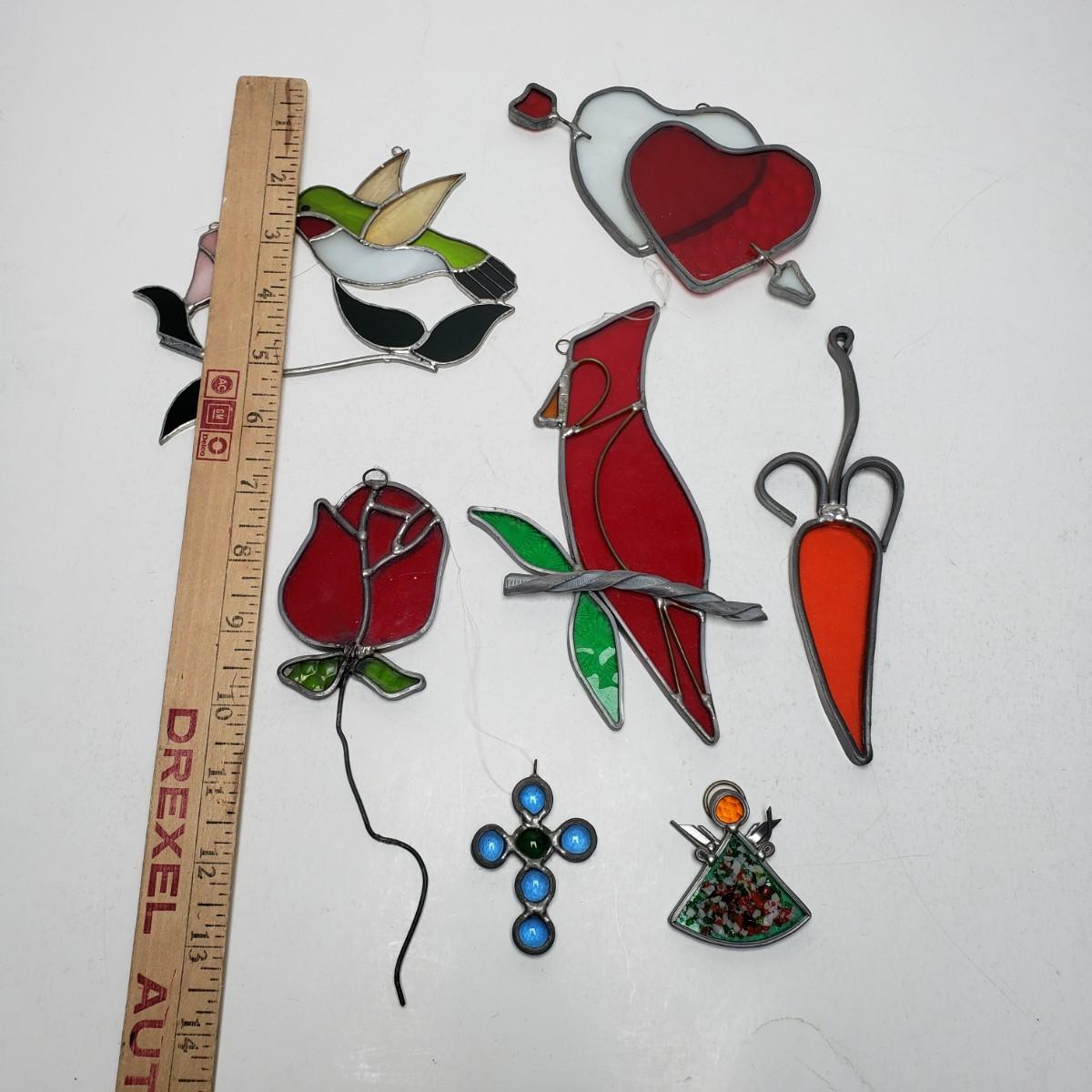 LOT 47F: Stained Glass Suncatchers-Hummingbird, Rose & Others