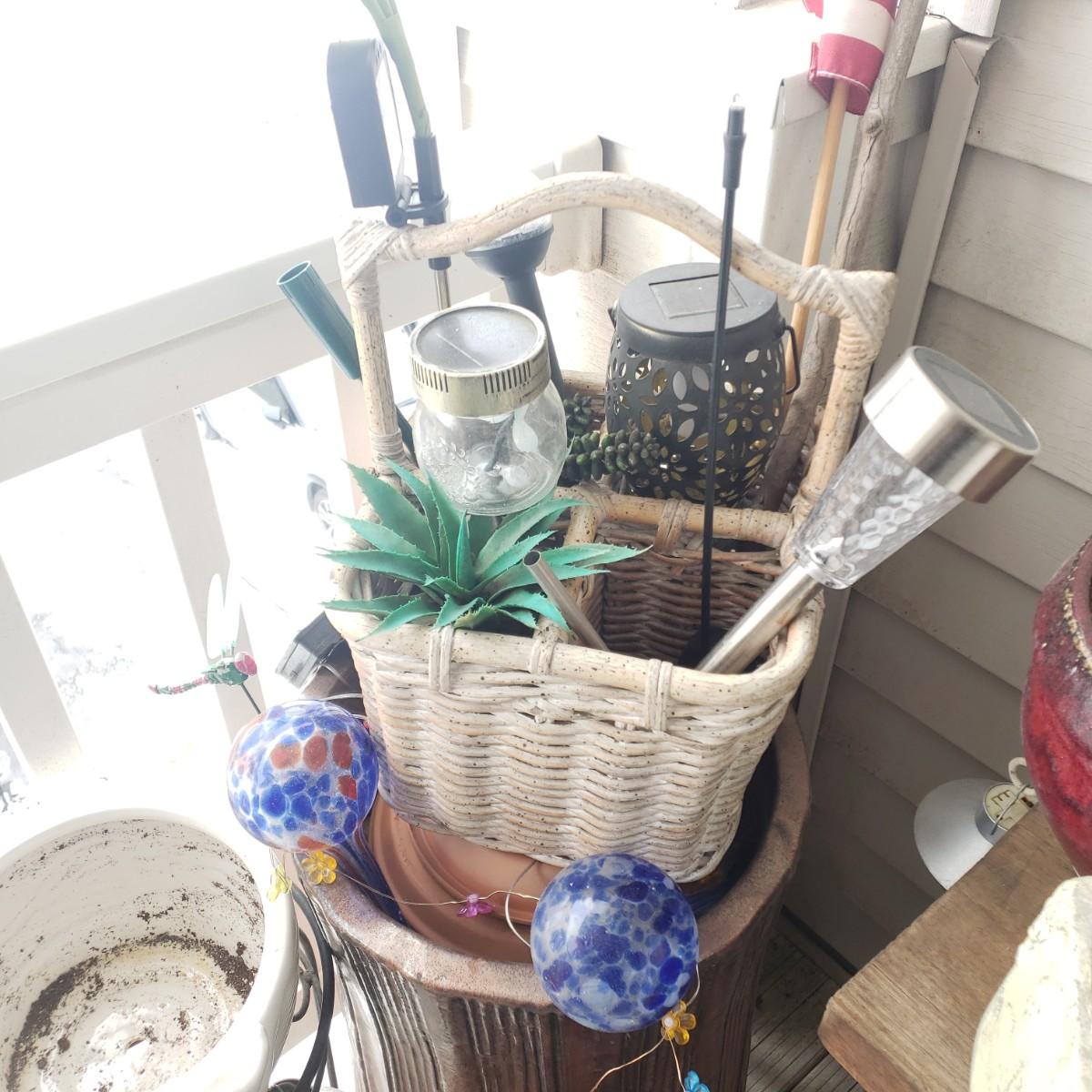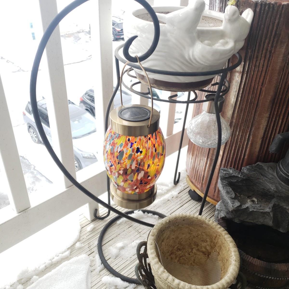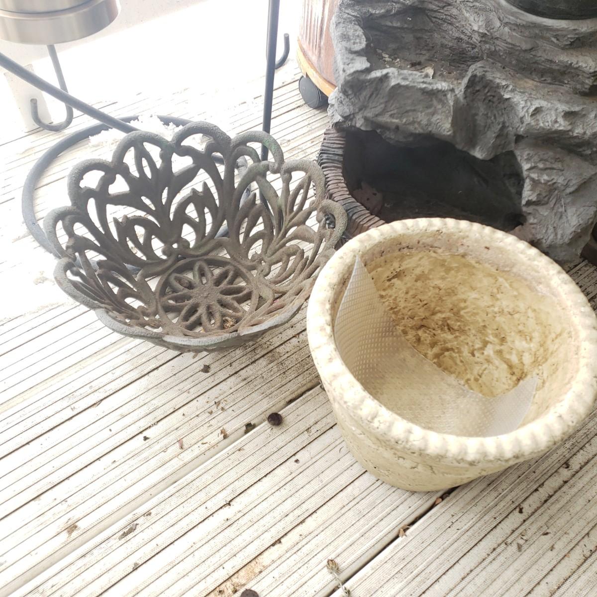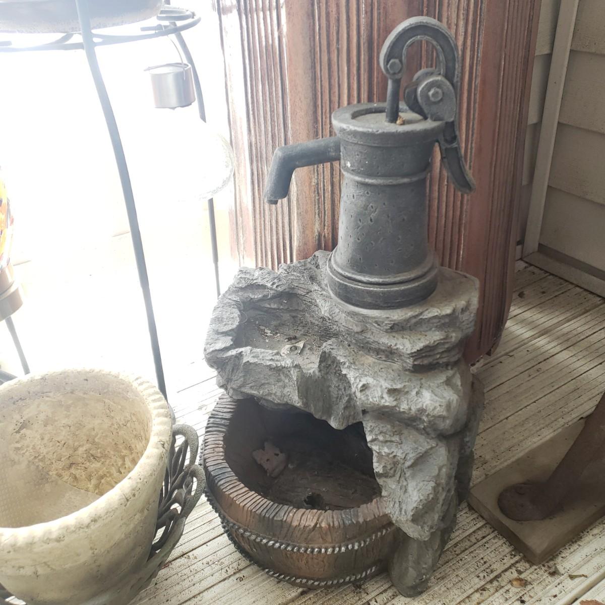 LOT 54P: Large Tree Trunk Style Planter with Assorted Outdoor & Garden Decor
