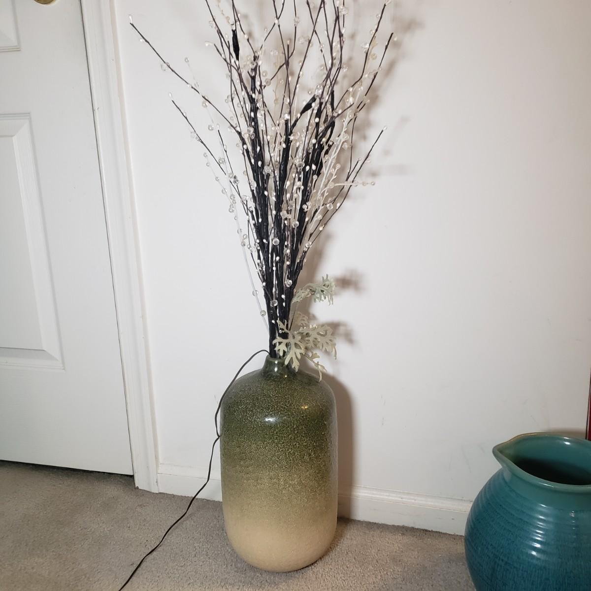 LOT 56F: Decorative Ceramics Pitchers & Floor Vase with Lighted Branch Florals