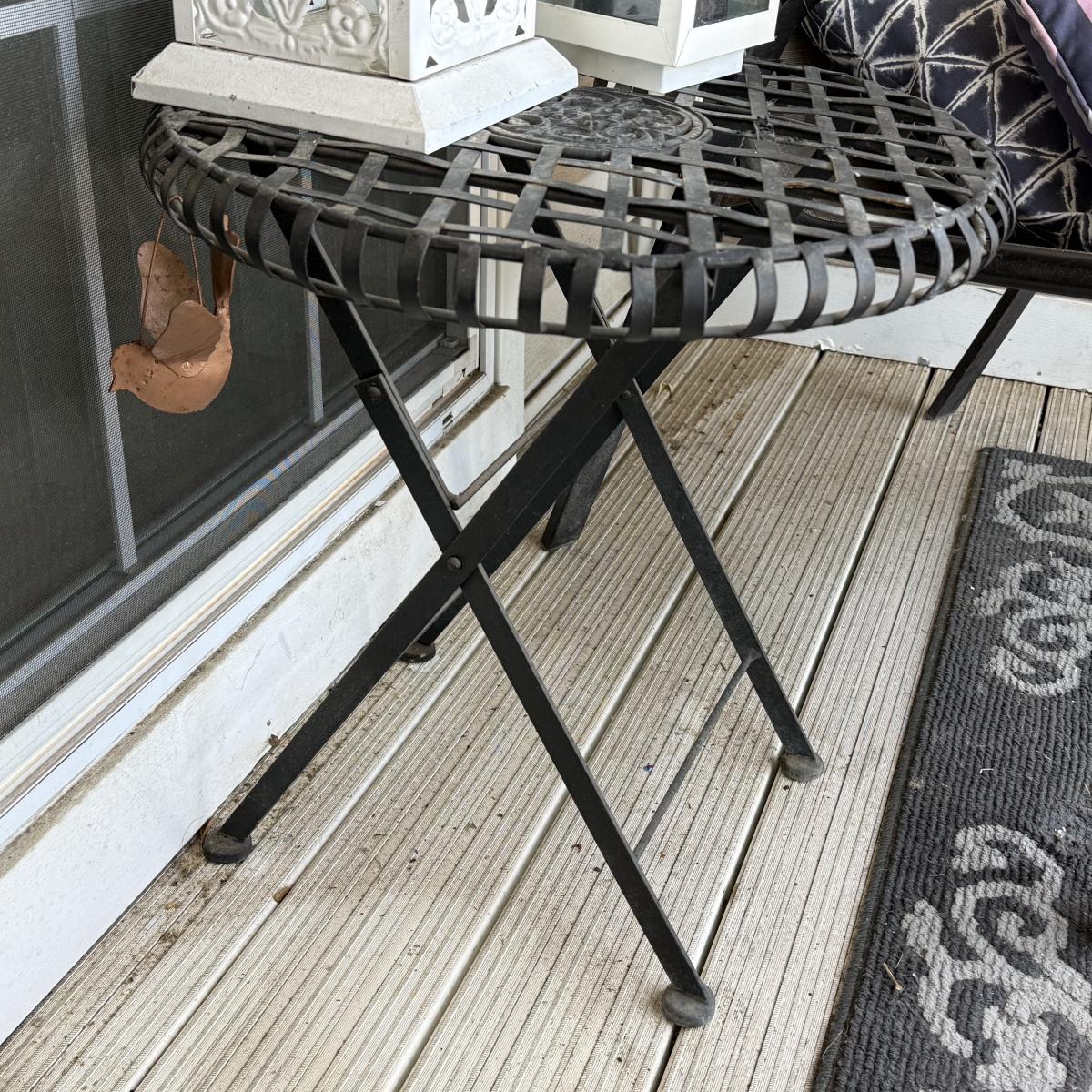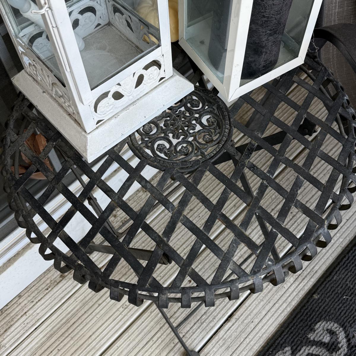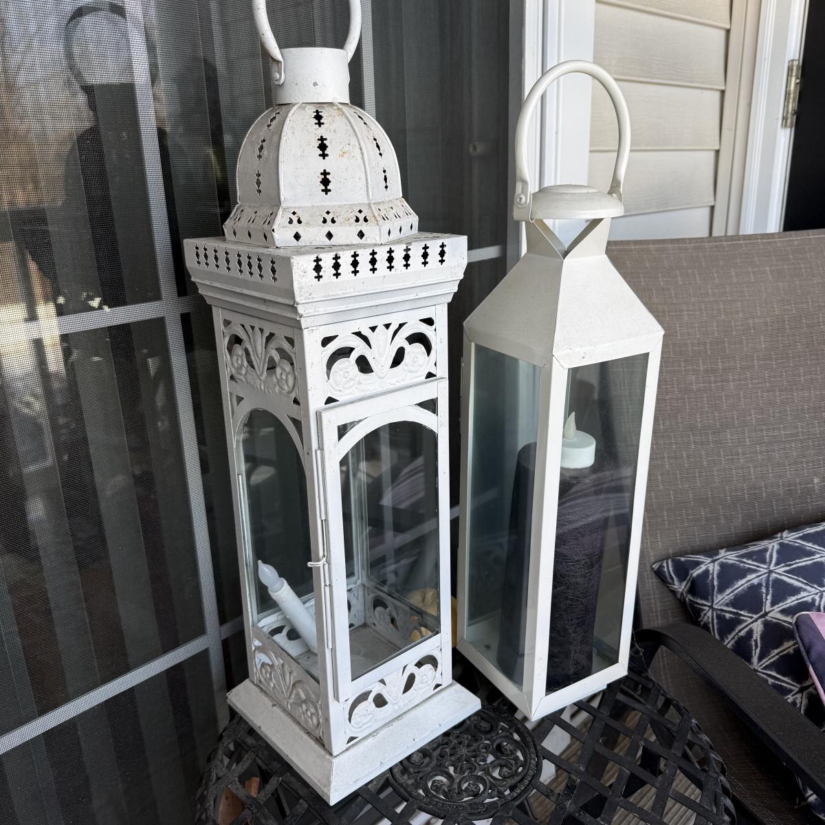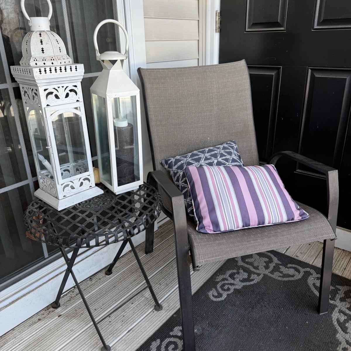 LOT 61P: For the Porch: Outdoor Chair, Folding Side Table, White Decorative Lanterns