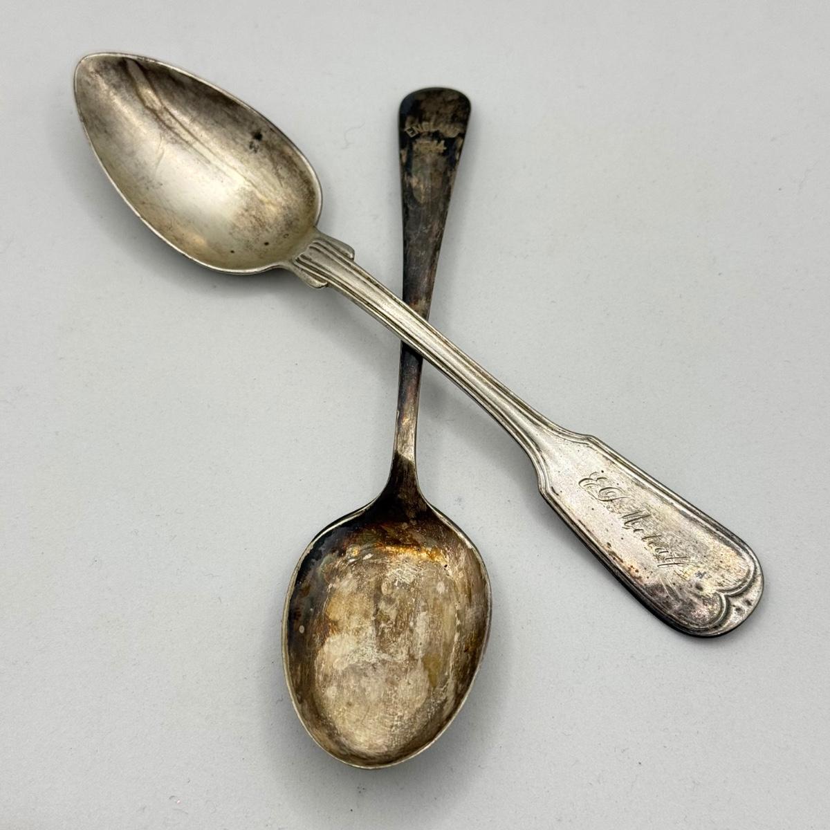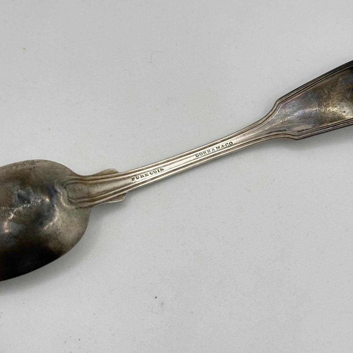 LOT 64J: Vintage Gorham Pure Coin Silver Spoon & 1944 England Silver Flat Bottomed Spoon (38.96g)