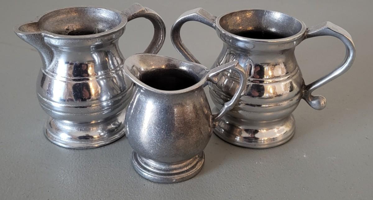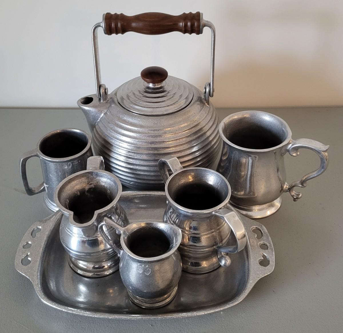LOT 109M Pewter Teapot, Pewter Sugar & Creamer Set