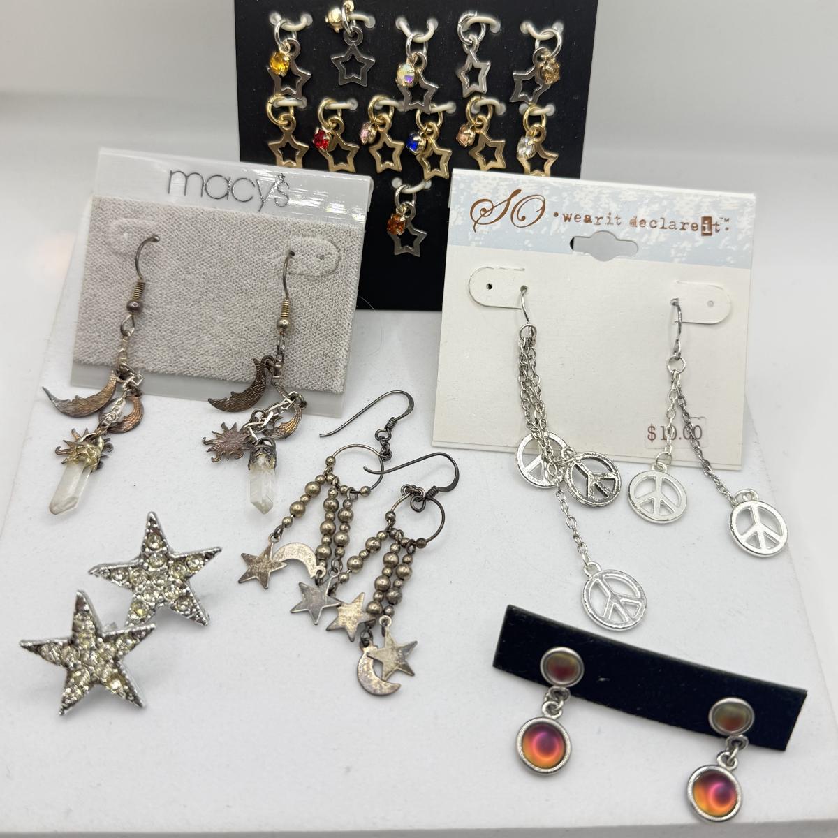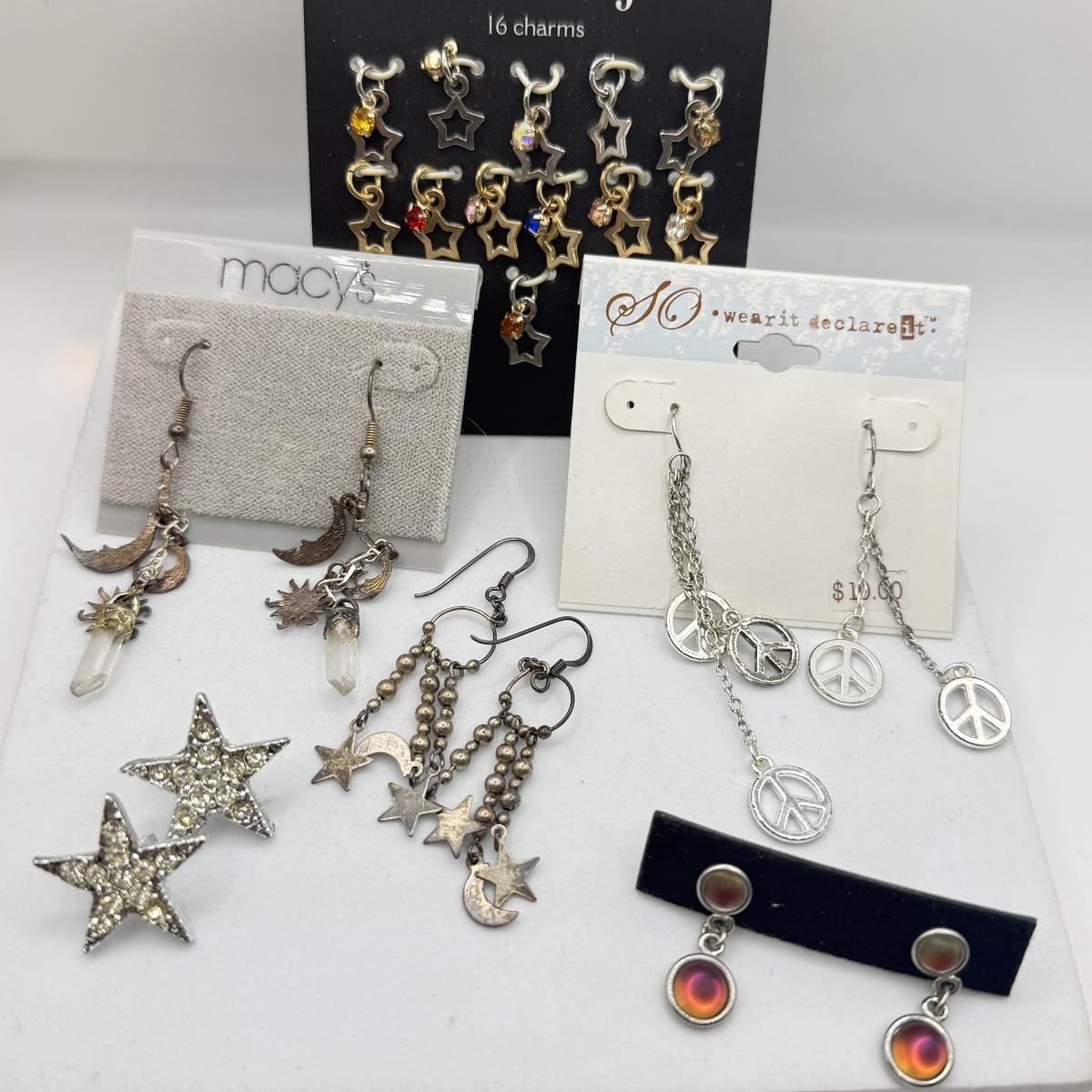 LOT 117J: Stars + Moons Pierced Earrings, Heidie & Jo Star Charm Set, Peace Sign Earrings & More