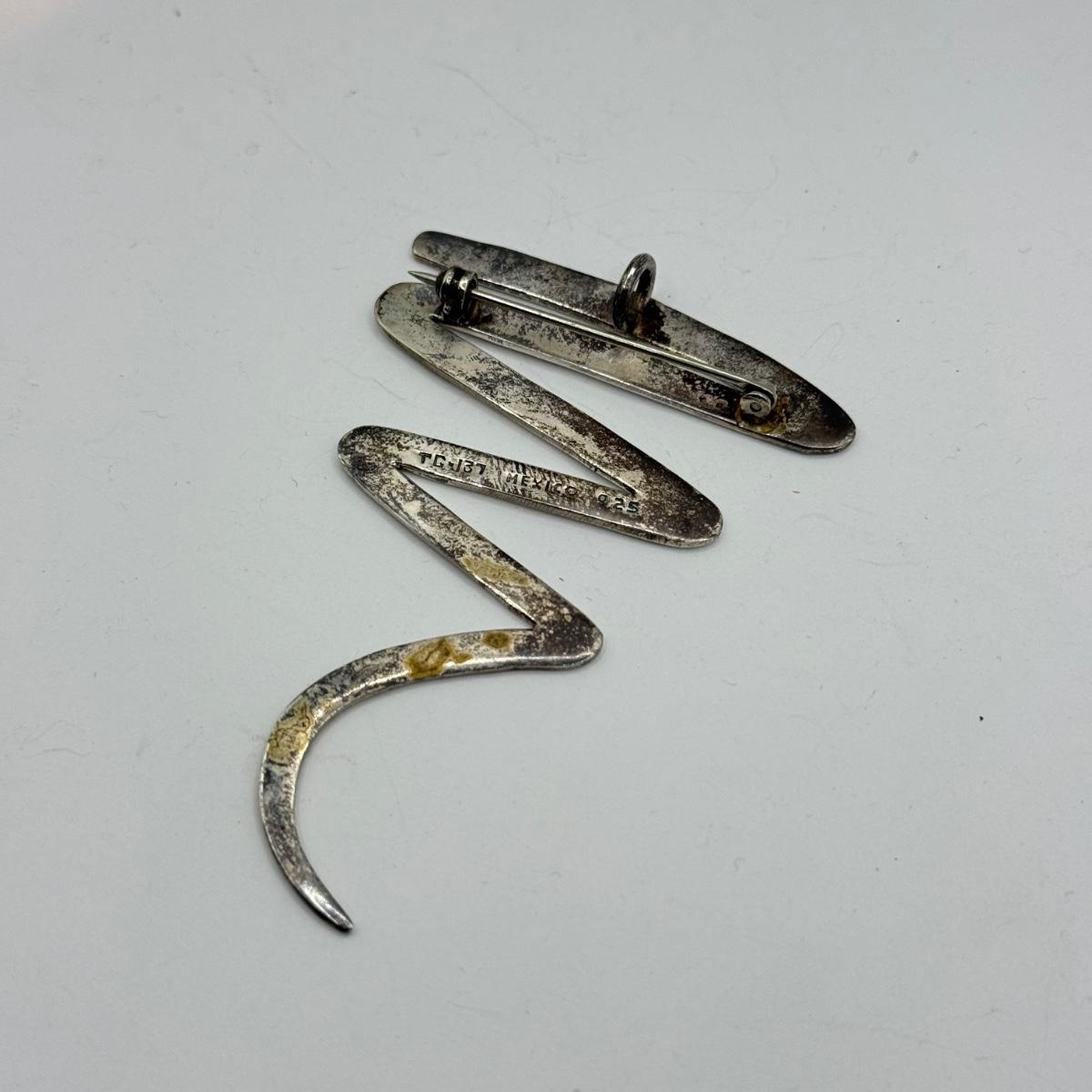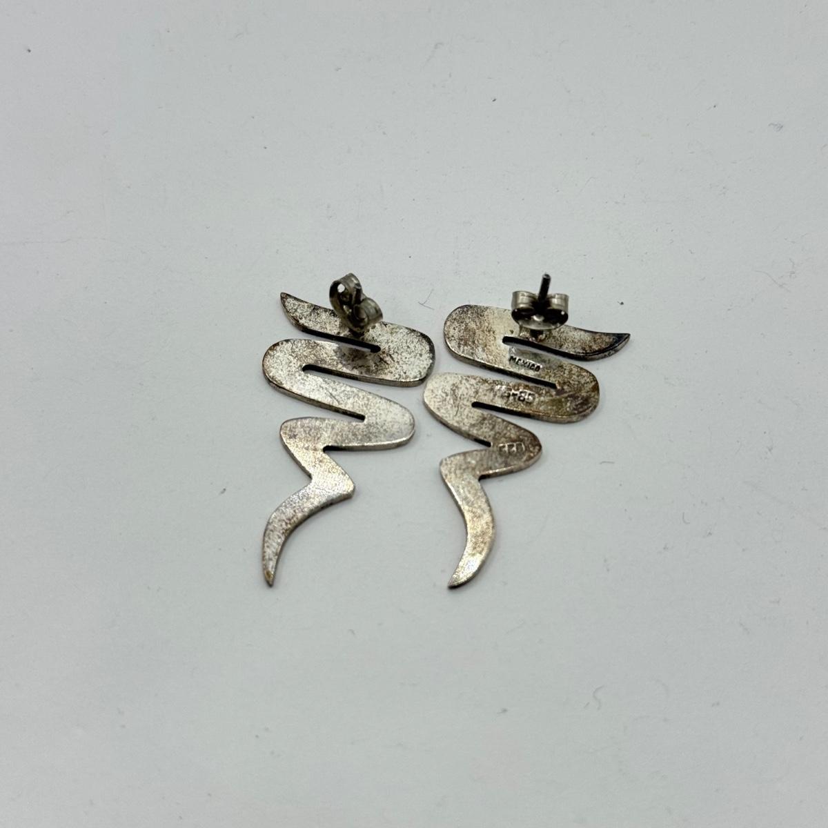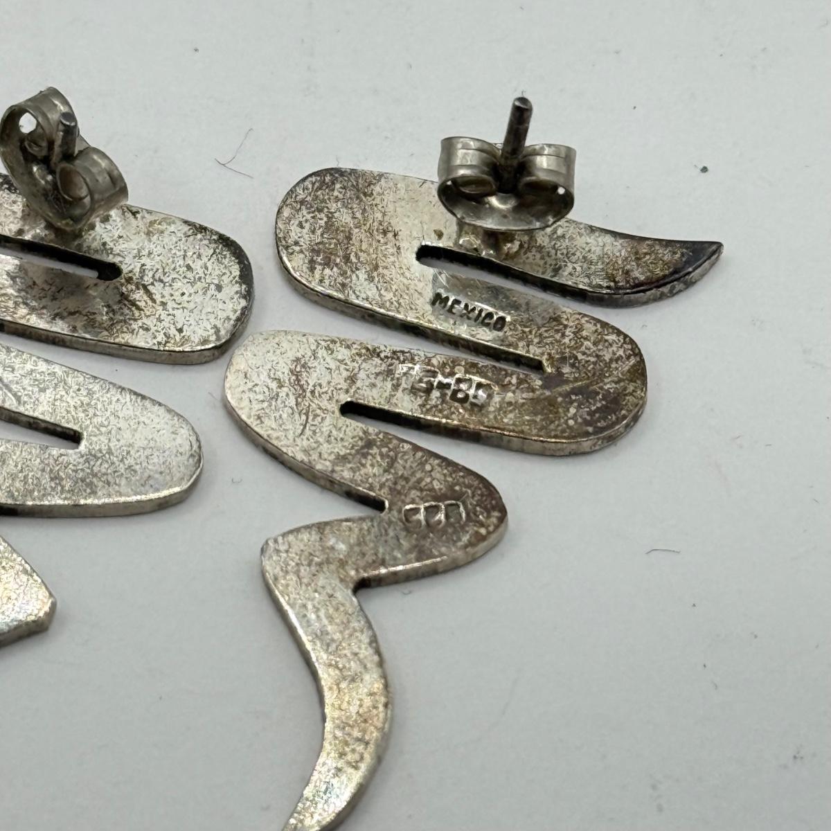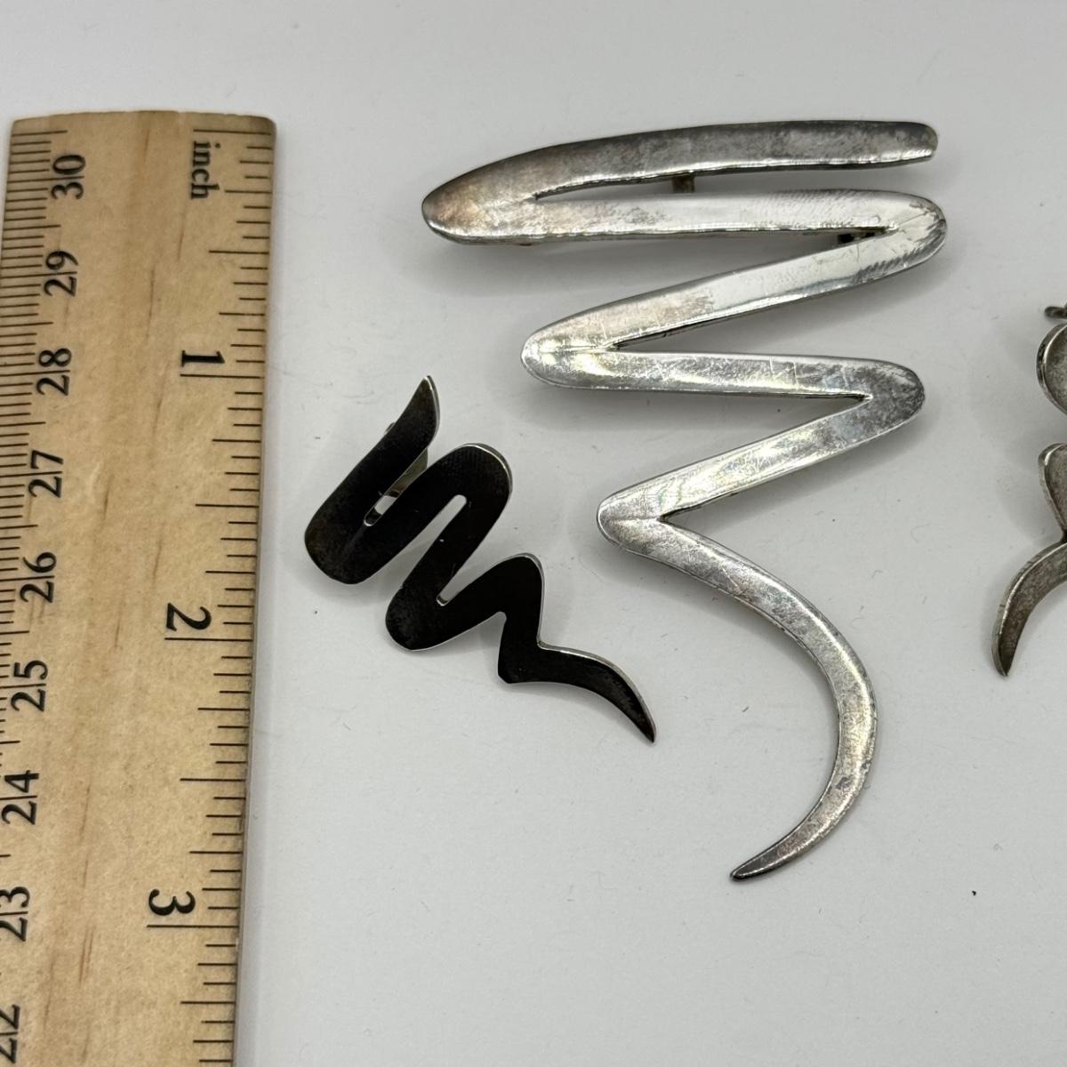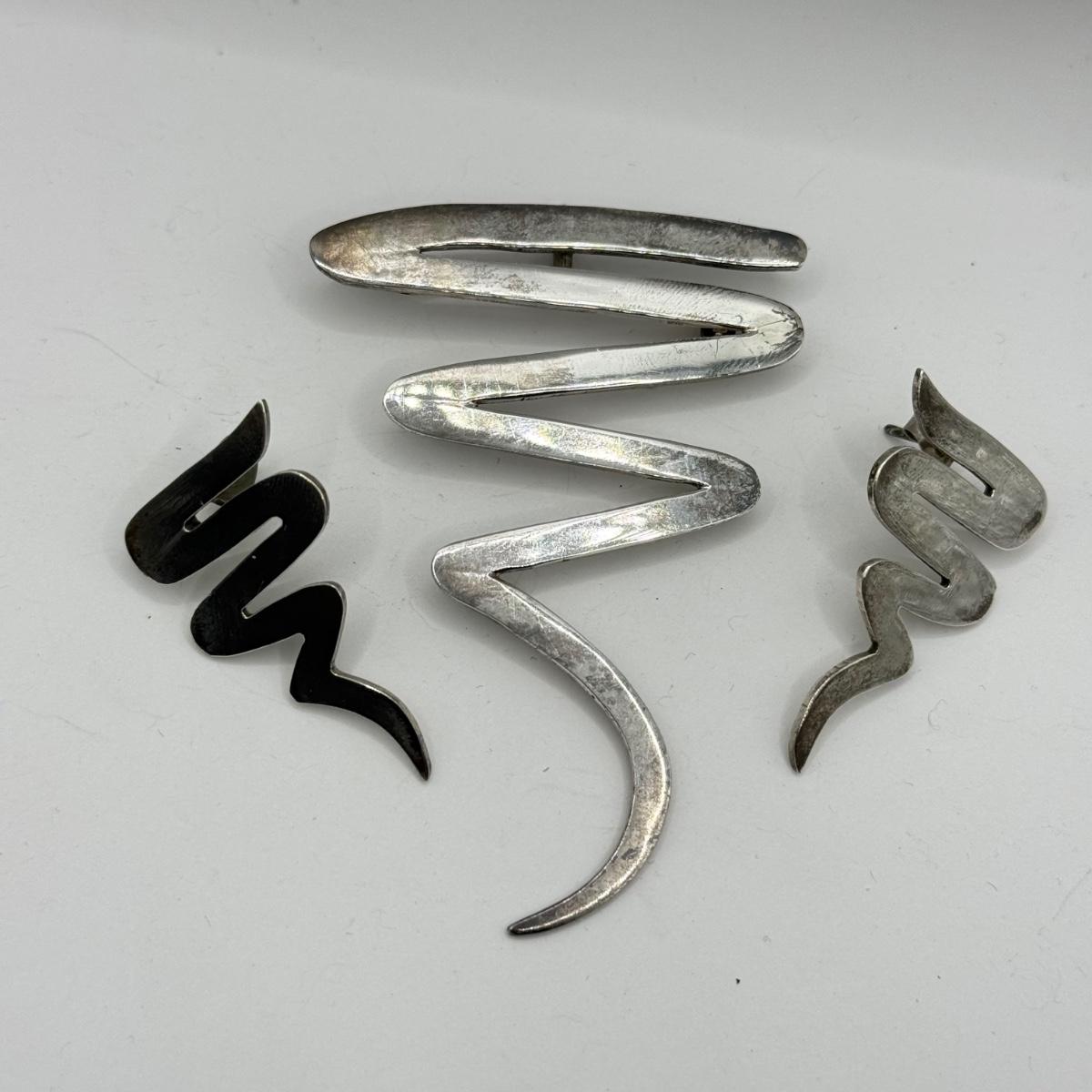 LOT 122J: Vintage Taxco Mexico 925 Sterling Silver Matching Modern Zig Zag Brooch Pin & Pierced Earrings (21.23g)