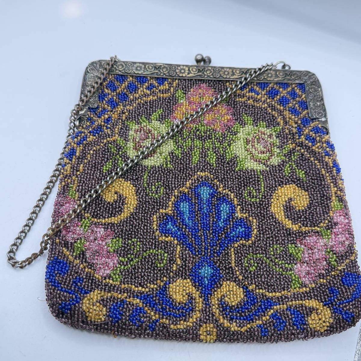 LOT 133K: Vintage Beaded German Handbag & Corde Bead Change Purse