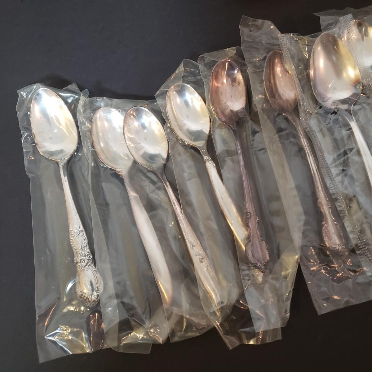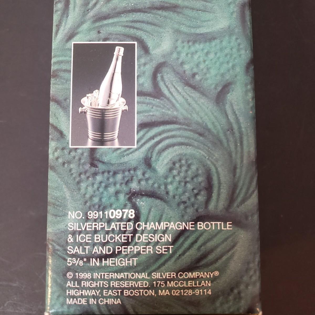 LOT 152L: Silverplate Serving Tray, Teaset, Wishing Spoons & Champagne Bottle/Ice Bucket Salt & Pepper Set