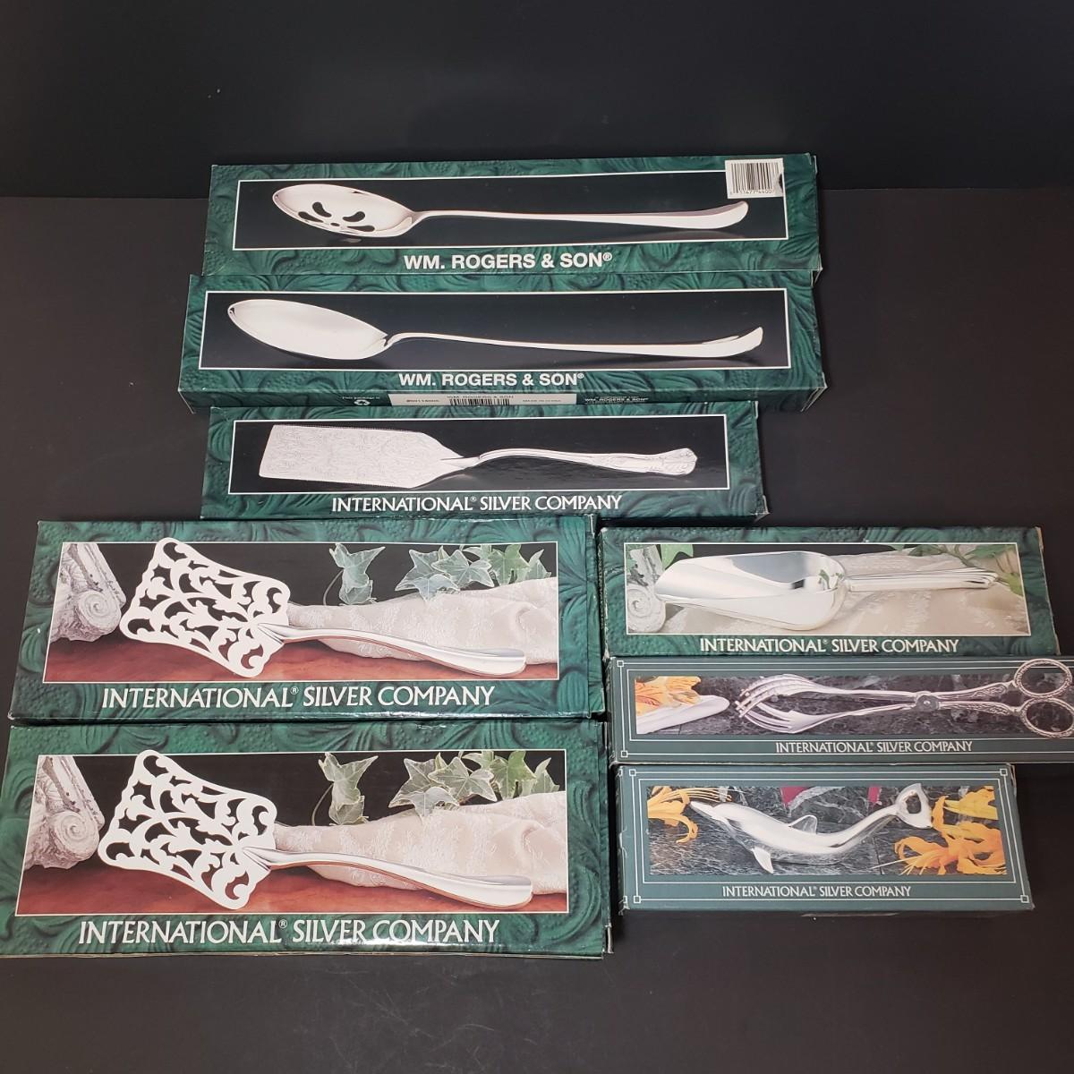 LOT 153L: Assorted New in Box Intl Silver Co Silverplate Serving Utensils & More
