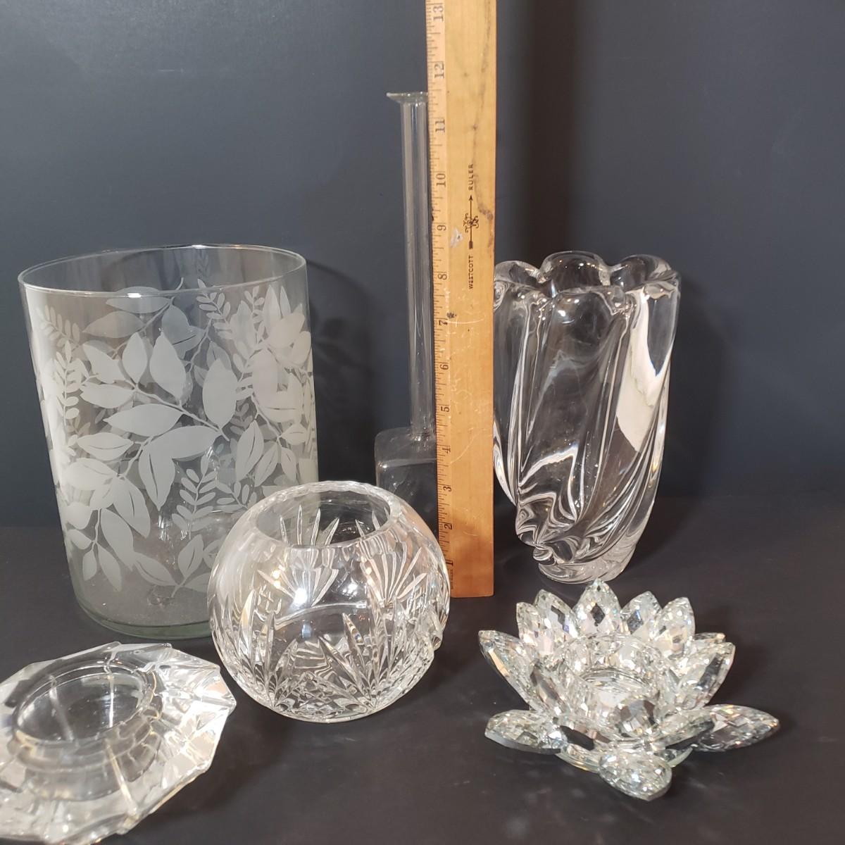 LOT 154L: Orrefors Vase & Candle Holder, Lotus Flower Candle Holder & More