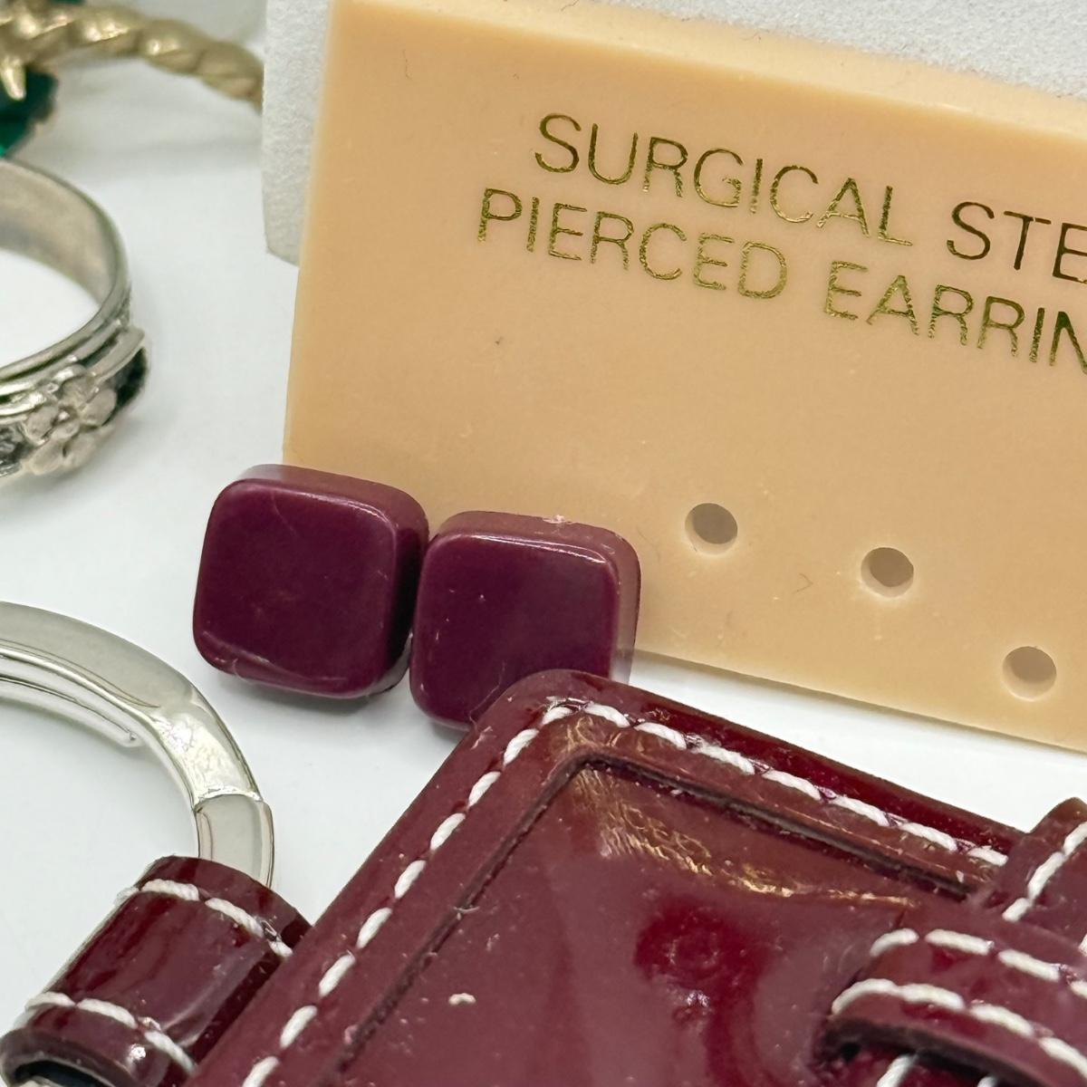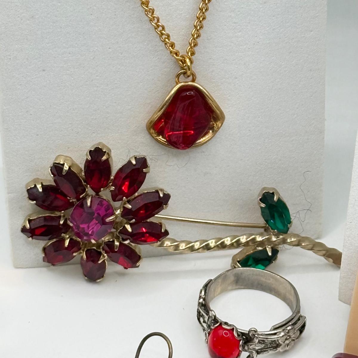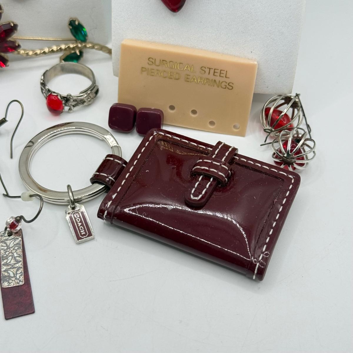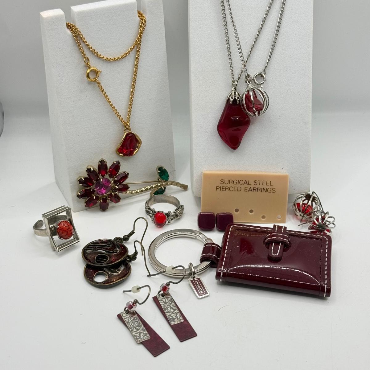 LOT 172J: Moody Reds: Mini Coach Leather Picture Frame, Necklaces, Pierced Earrings & More