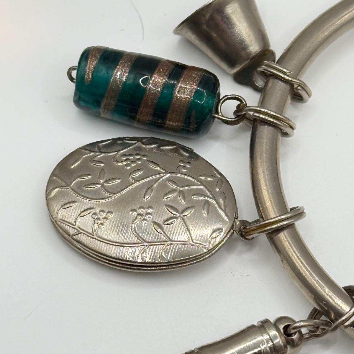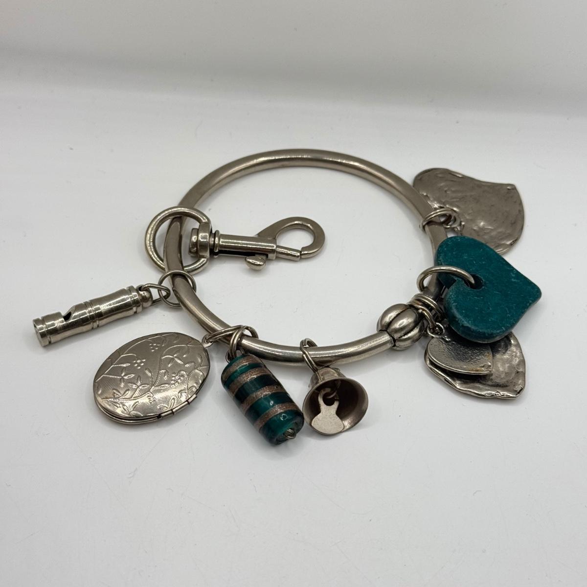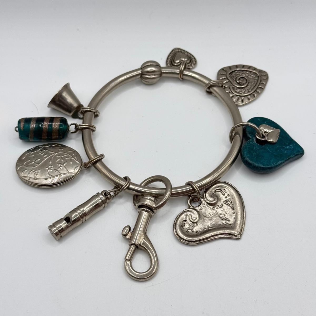 LOT 174J: Charm Bracelet full of Heart Charms, a Locket & Keychains