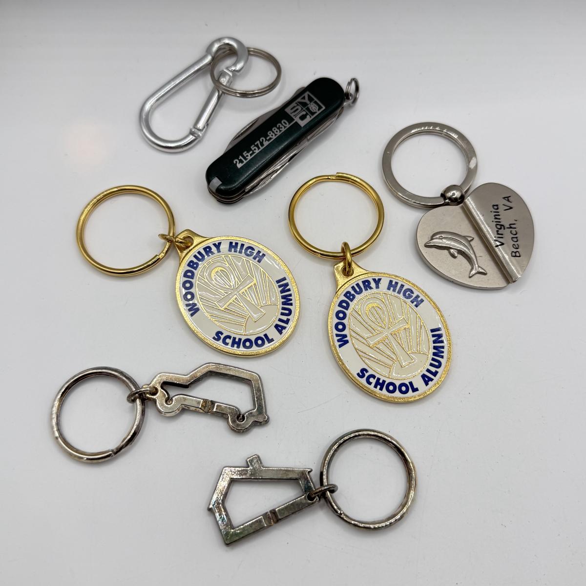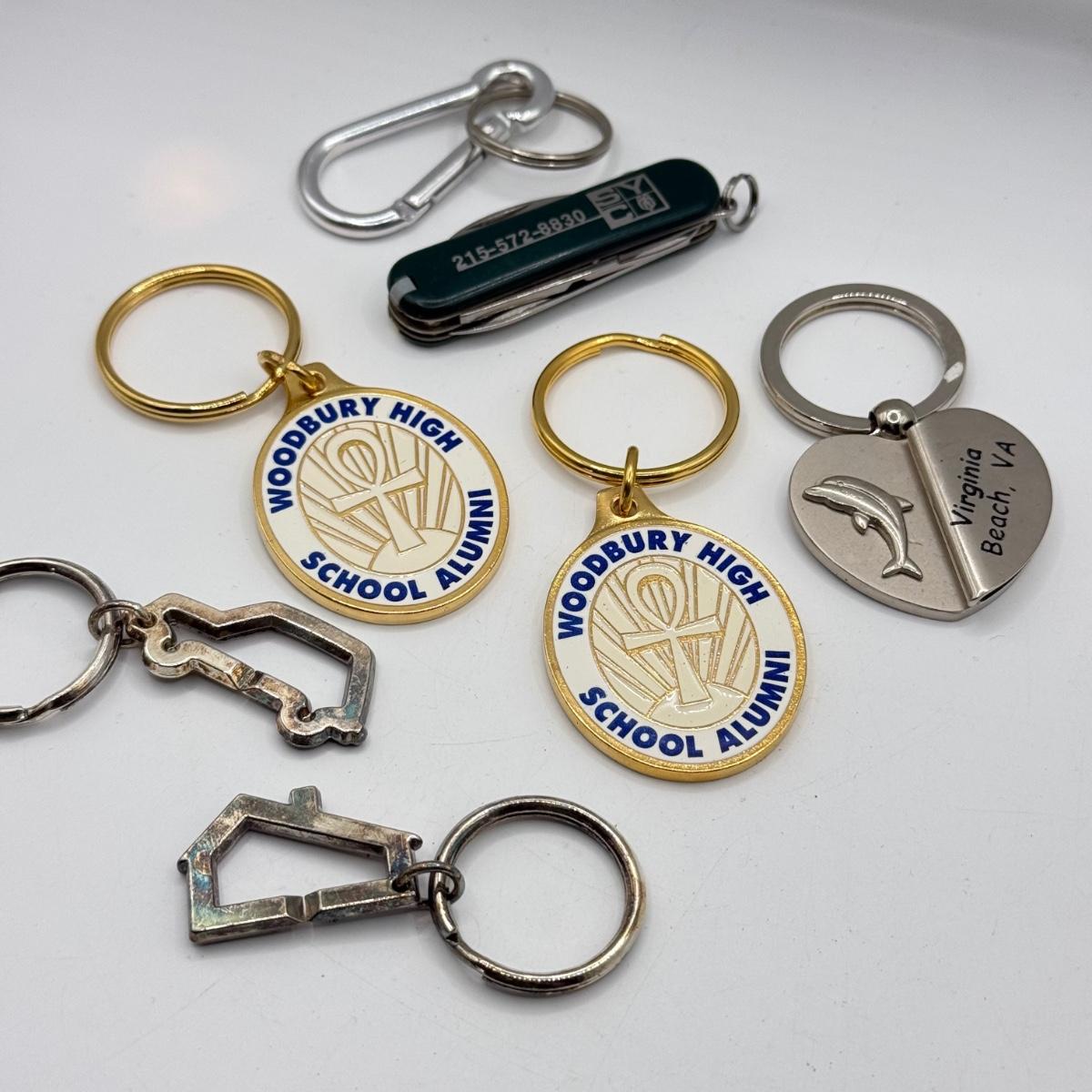 LOT 175J: Green Swiss Army Knife & Collection of Keychains incl Woodbury HS Alum