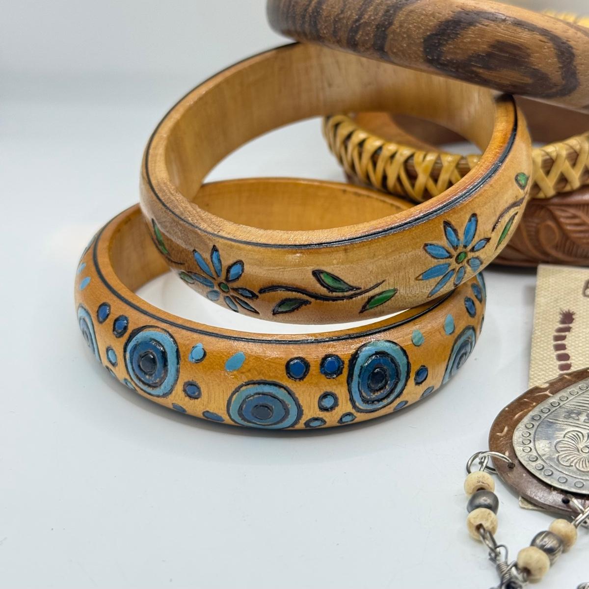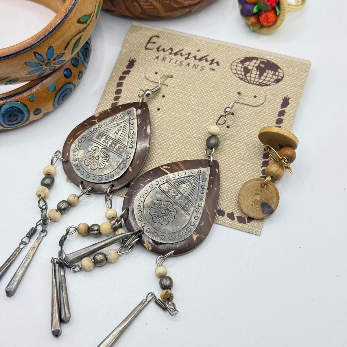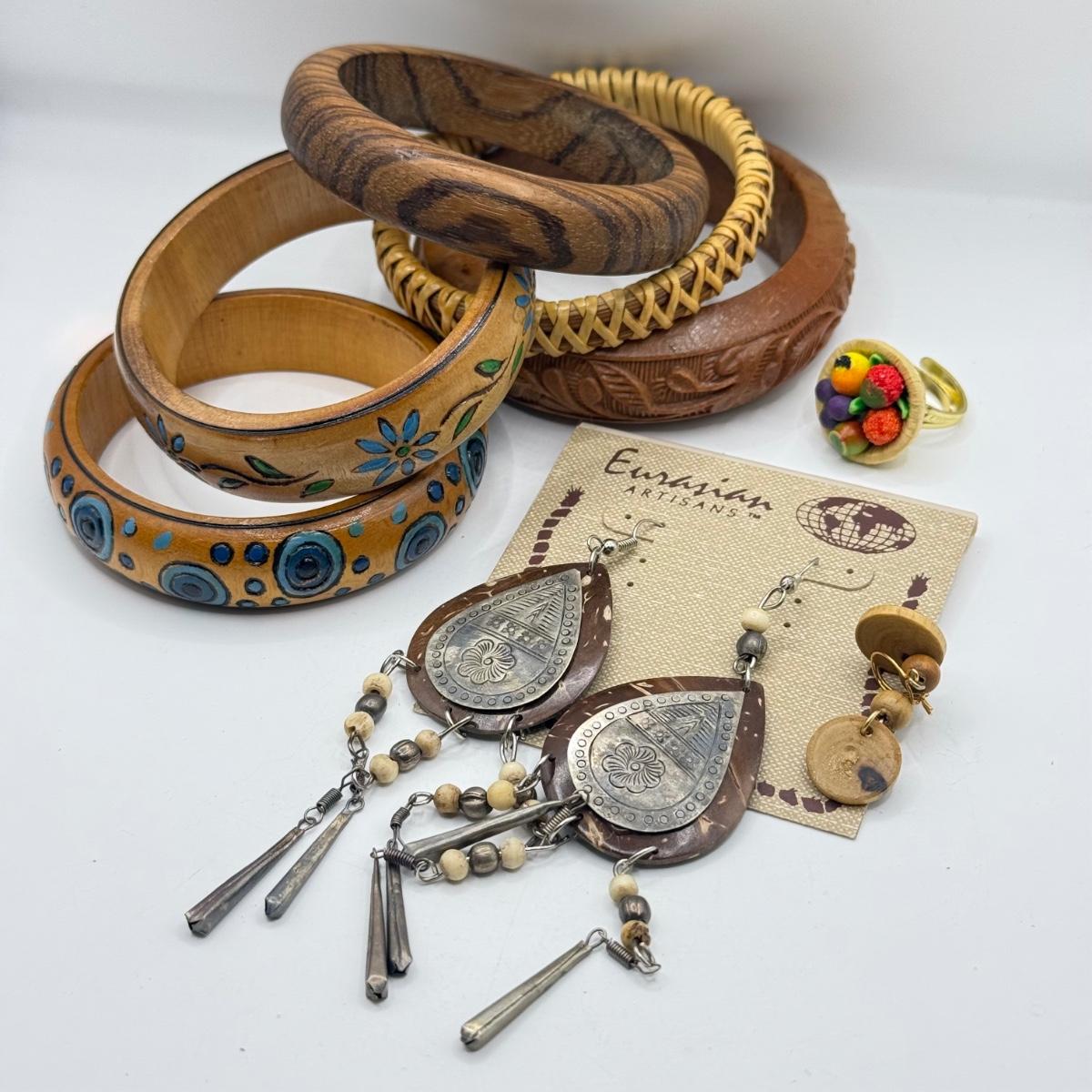 LOT 177J: Wooden Bangles, Fruit Bowl Ring, Eurasian Artisans Earrings & Small Wood Earrings