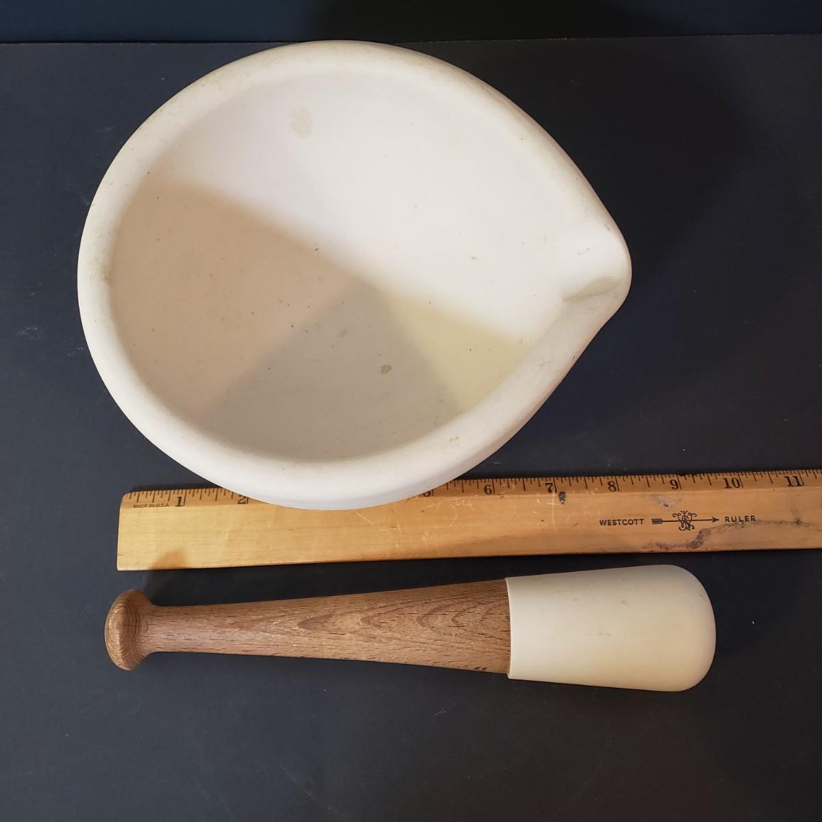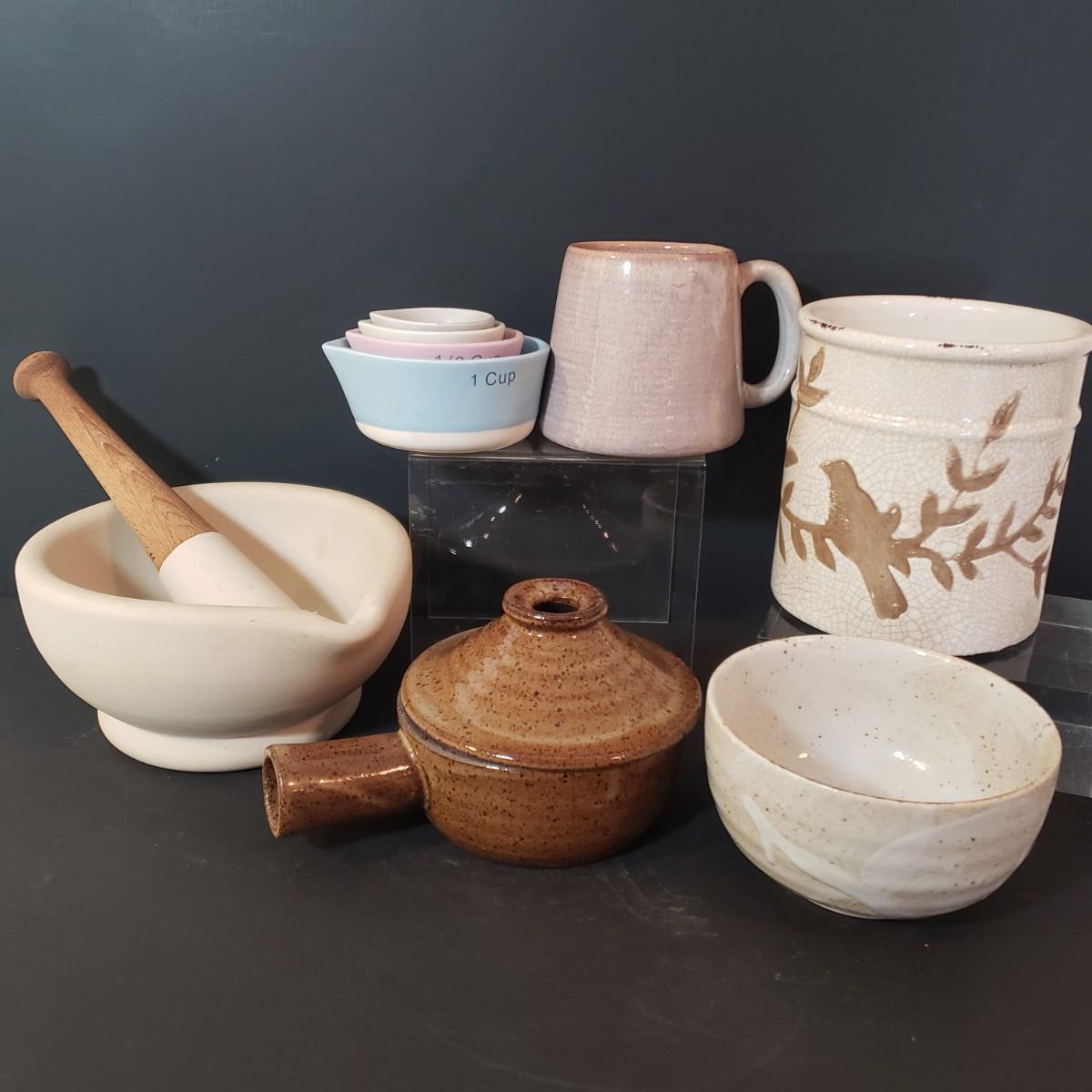 LOT 182K: Large Mortar & Pestle made in England with Stoneware Kitchen Necessities Assortment