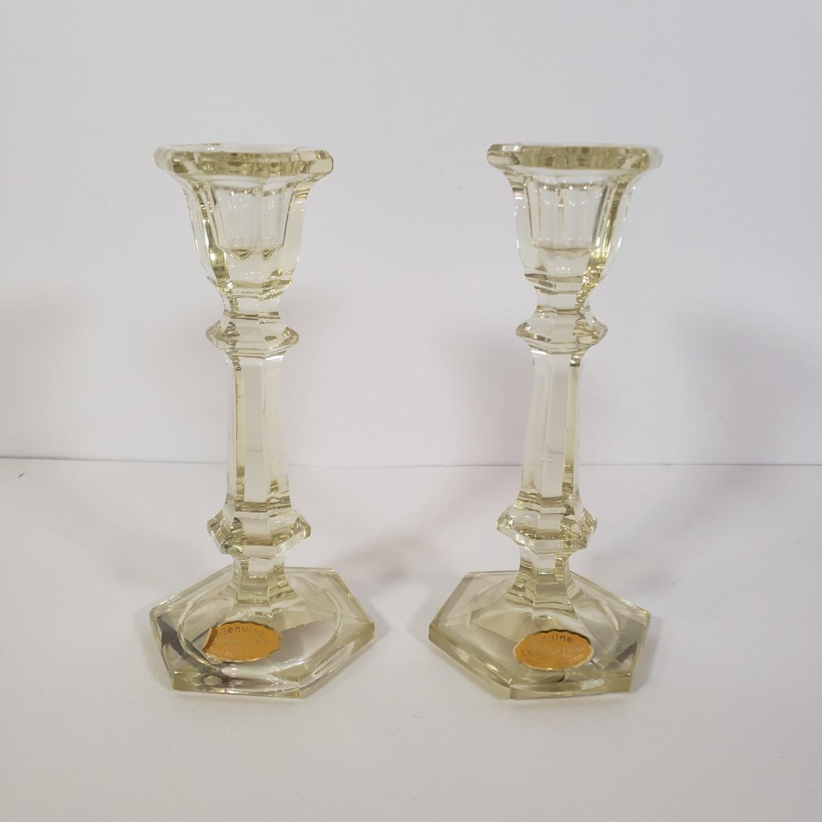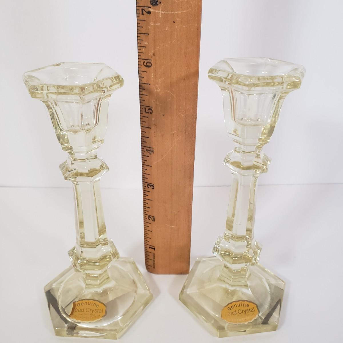 LOT 187K: Yellow West German Candlesticks, Large Iridescent Orange Bowl & More