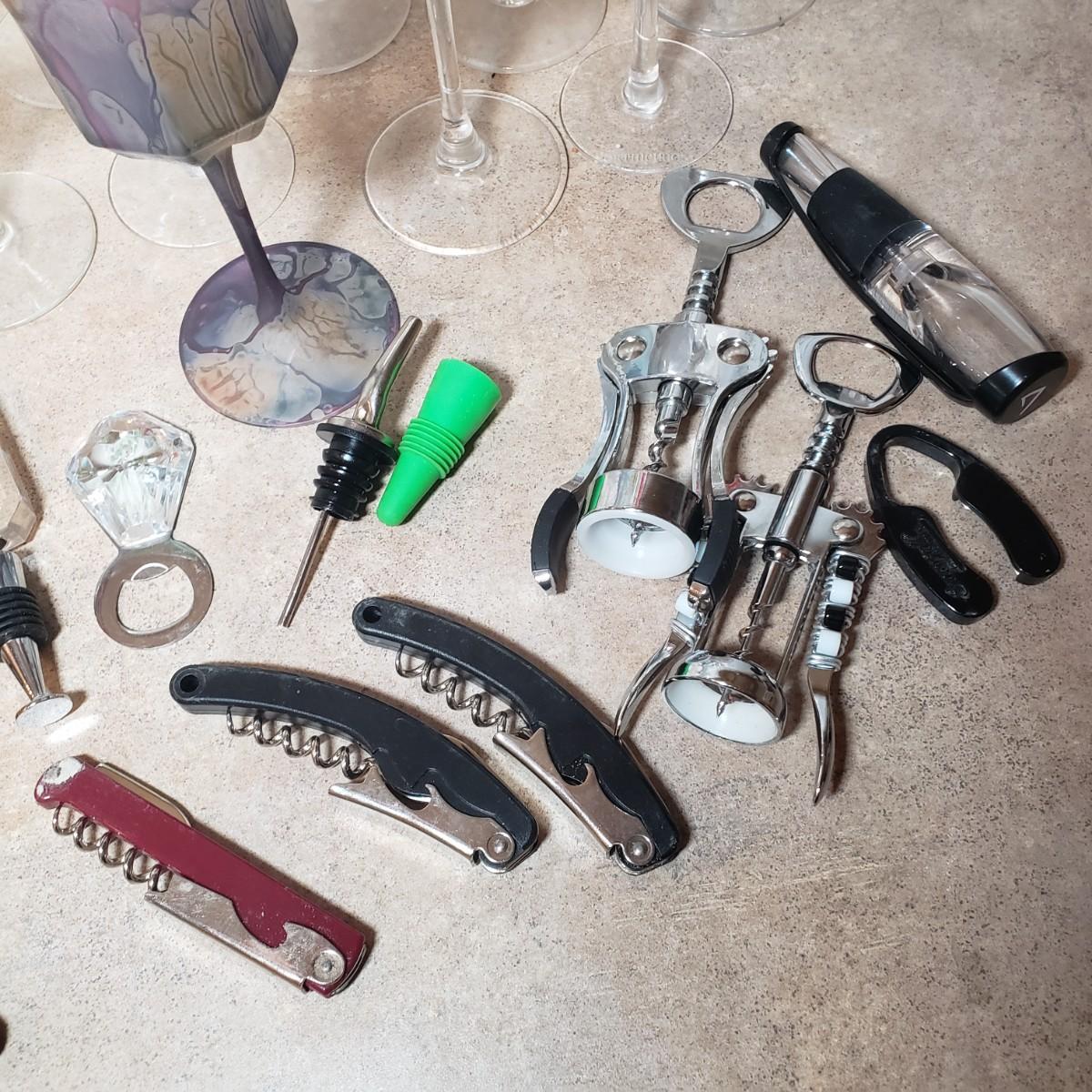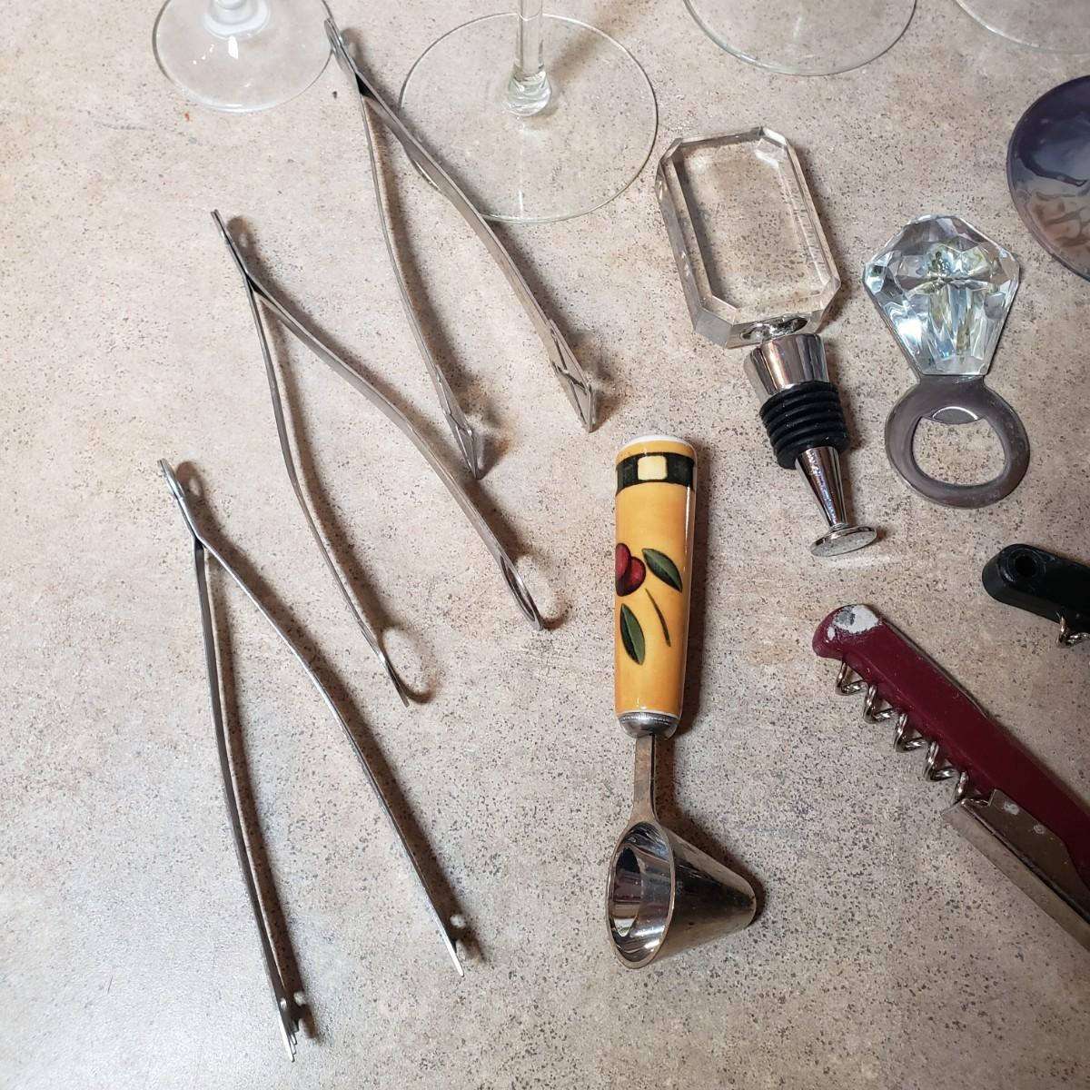 LOT 199K: Wine Glasses with Large Assortment of Wine & Barware Accessories