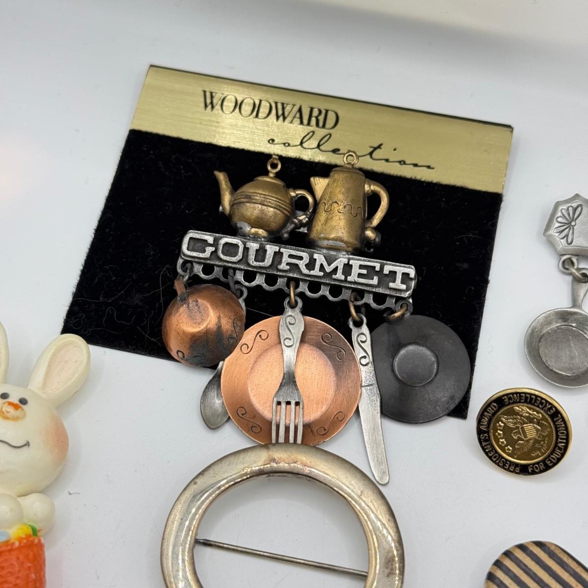 LOT 209J: Pin Collection: Woodward Gourmet, Goldtone Eagle, Le Chef & More