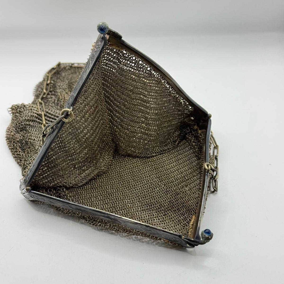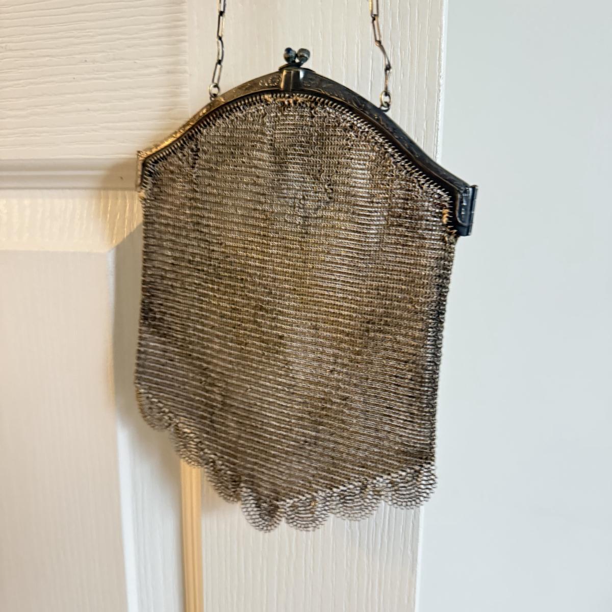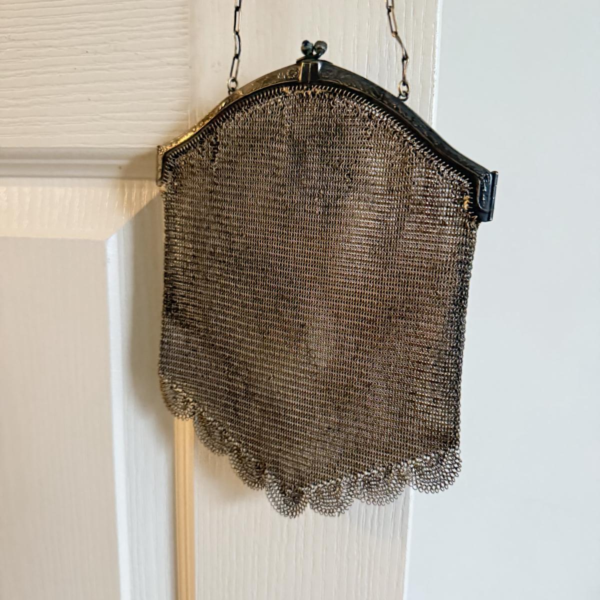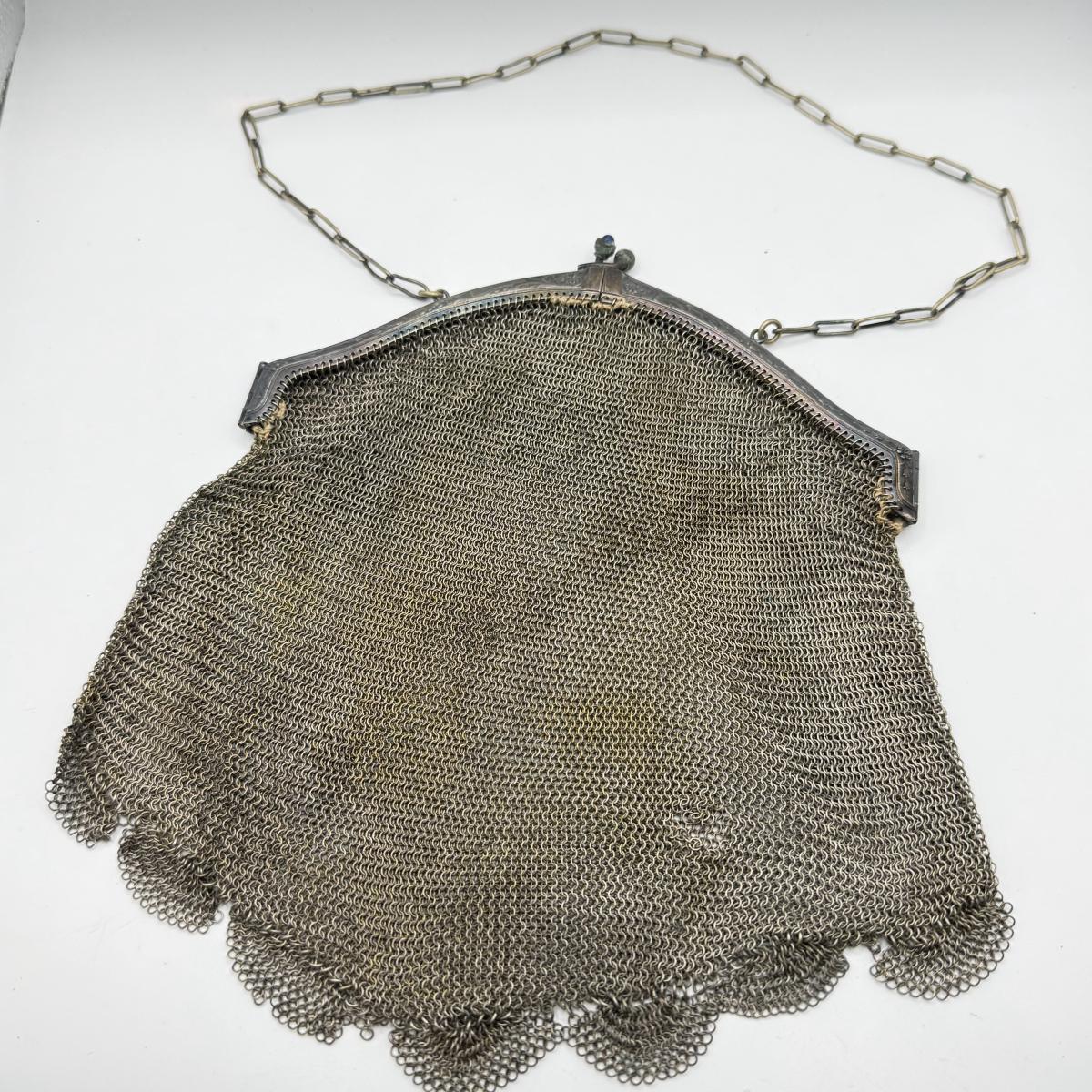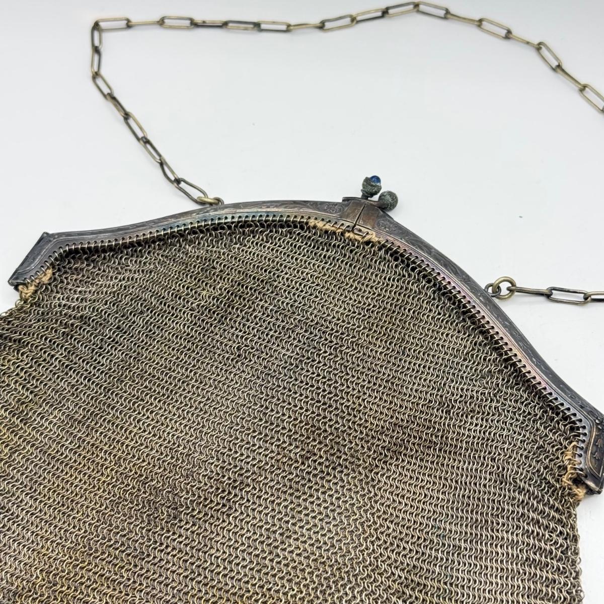 LOT 217J: Antique Mesh Link Chain Mail Handbag w/ Silver Clasp (acid tested)