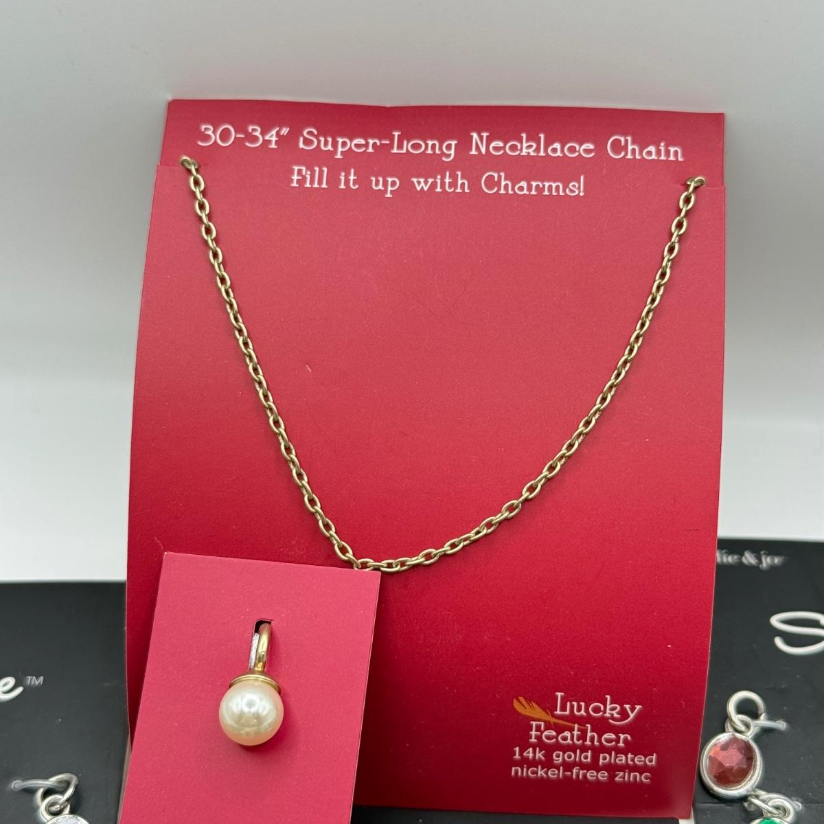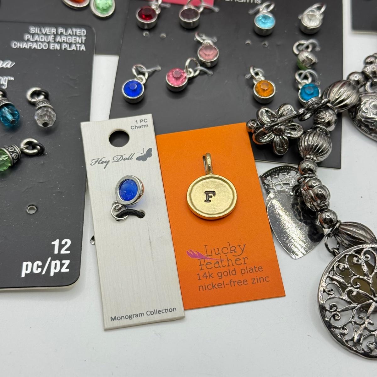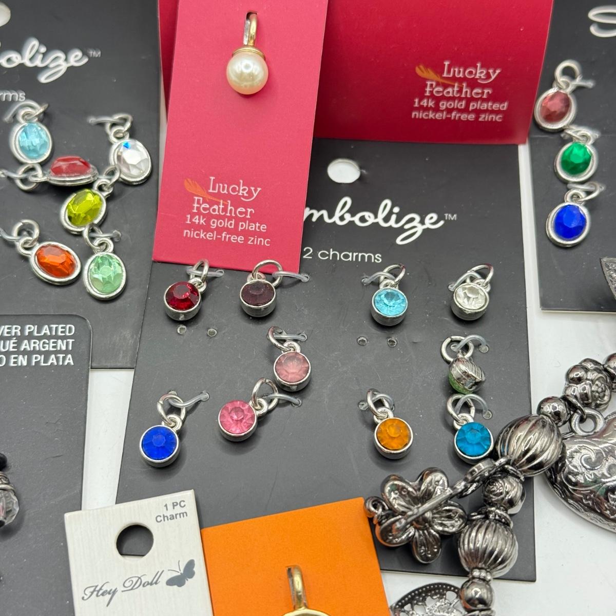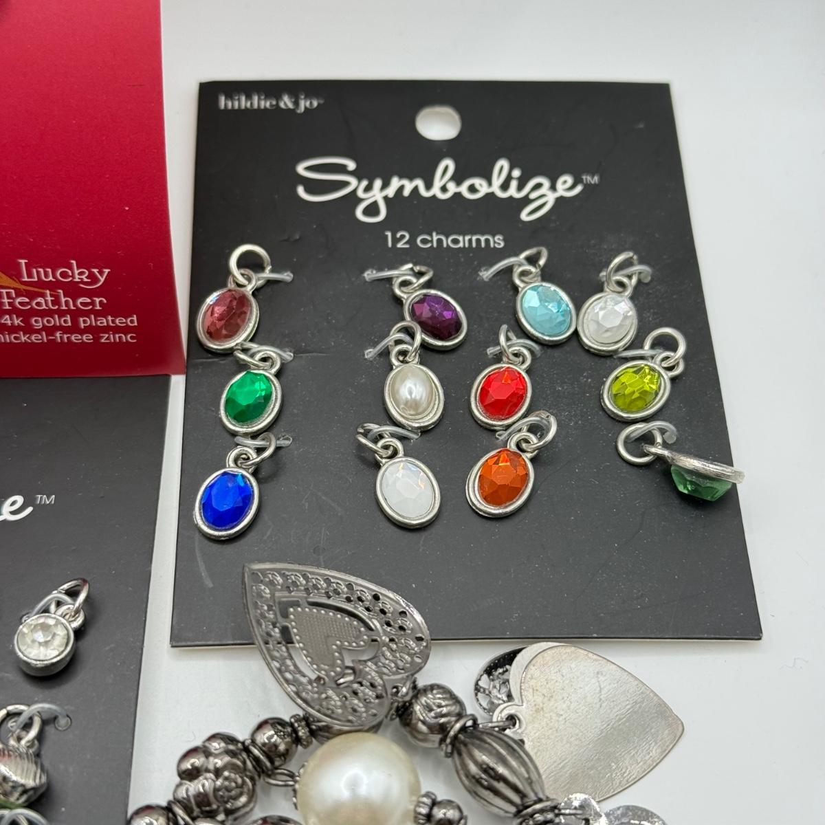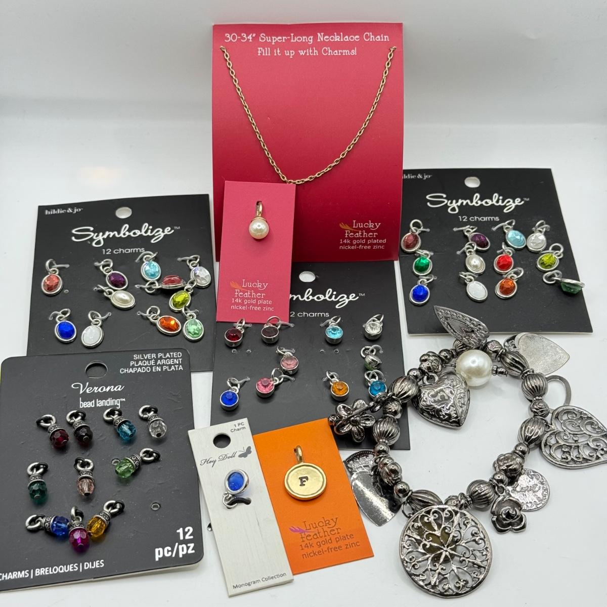 LOT 221J: Charm Bracelet w/ Hearts, 14k Gold Fill Charm Necklace & Pair of Charms & Symbolize Charm Sets