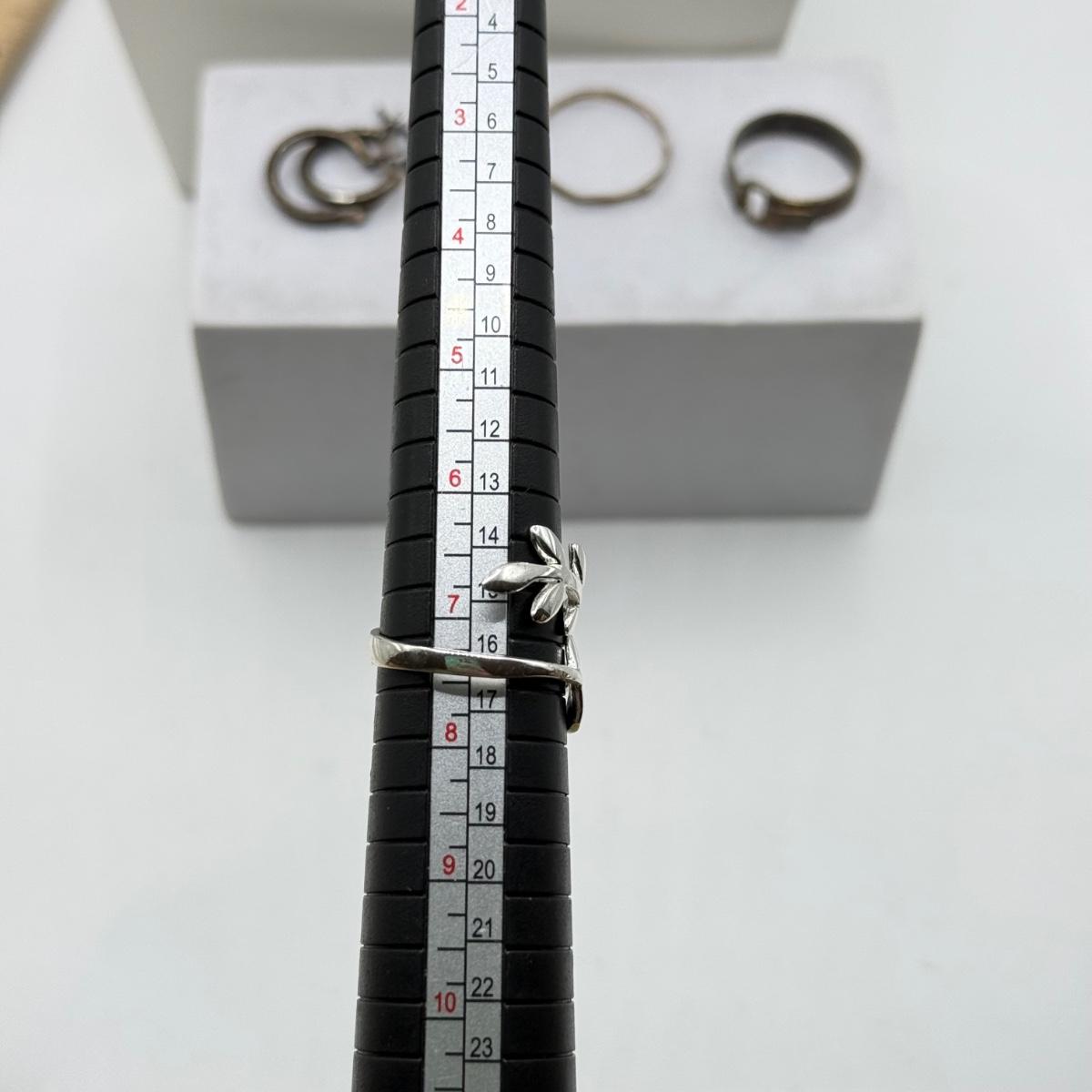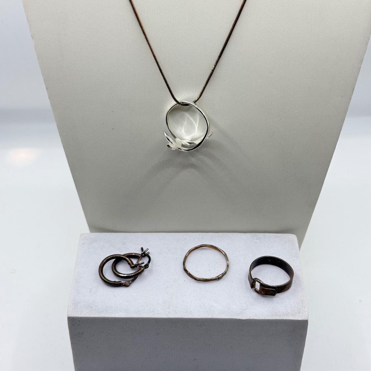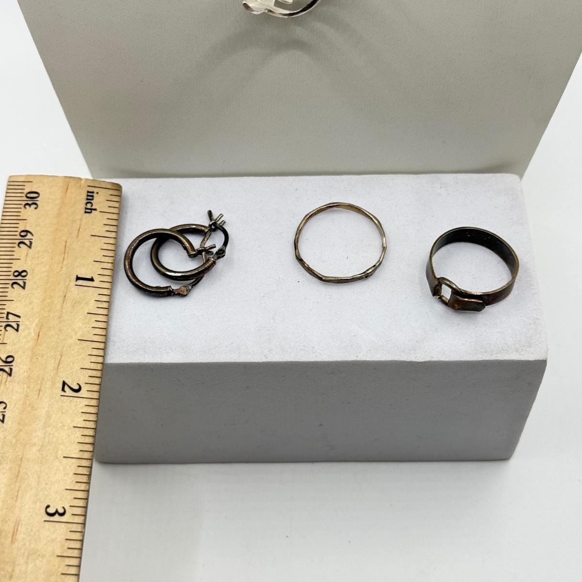 LOT 233J: Sterling Silver Jewelry: Three Rings, Necklace & Earrings (10.43g)