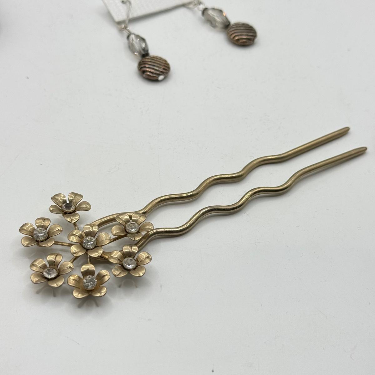 LOT 239L: 32" Long Bell Chain Belt w/ Earrings, Vintage Hair Accessories & More