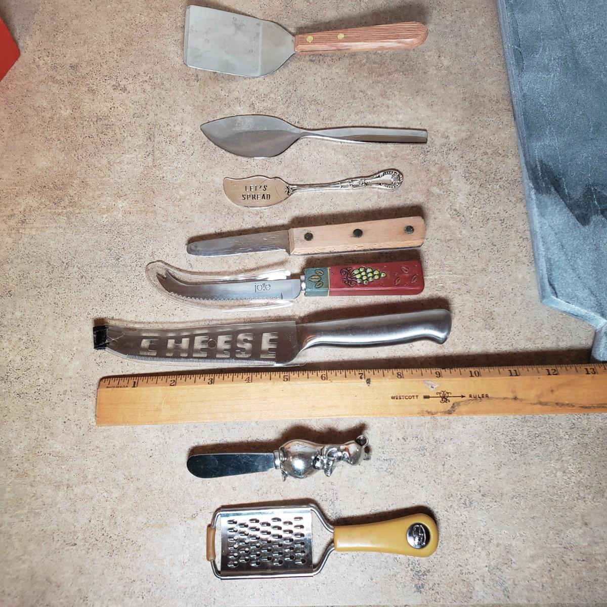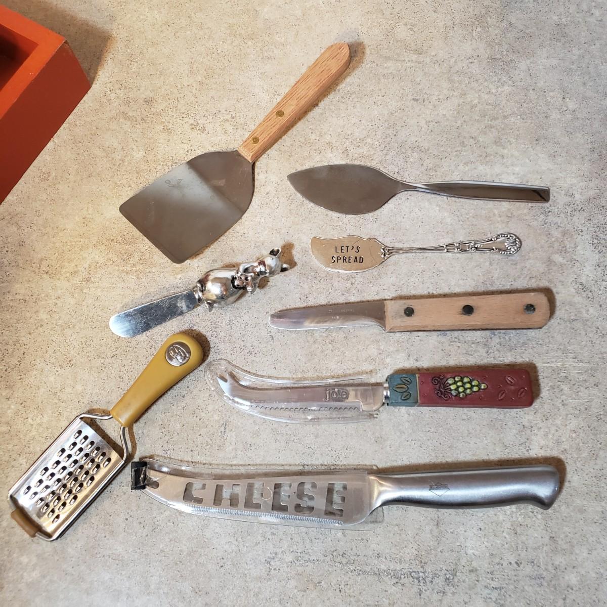 LOT 242K: Cheese Knives & Marble Serving Boards with Wooden Butcher Block