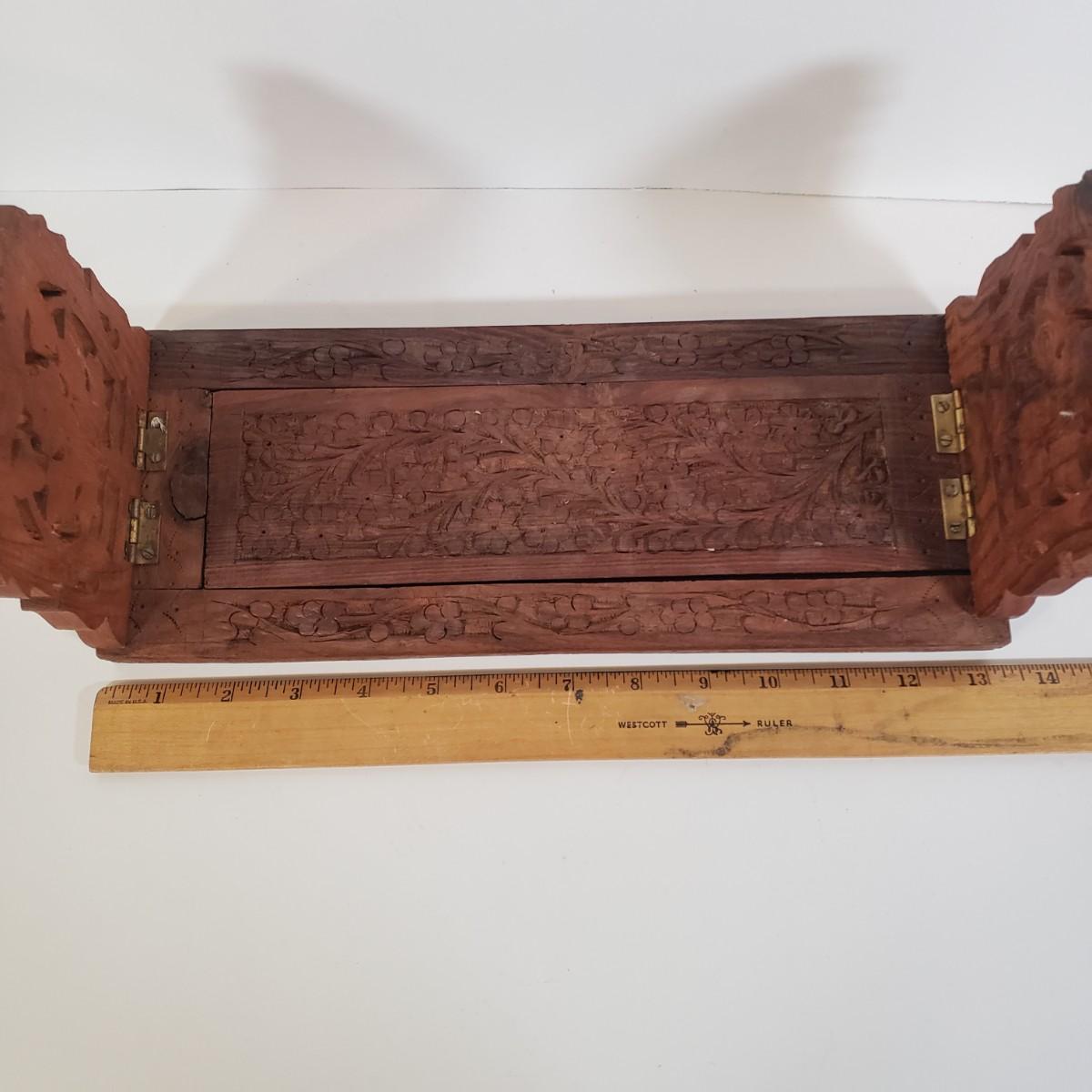 LOT 247L: Key, Tree Branch & Unique Flatware, Hand Carved Wooden Book Rack, Lotus Chamber Candlestick Holder & More