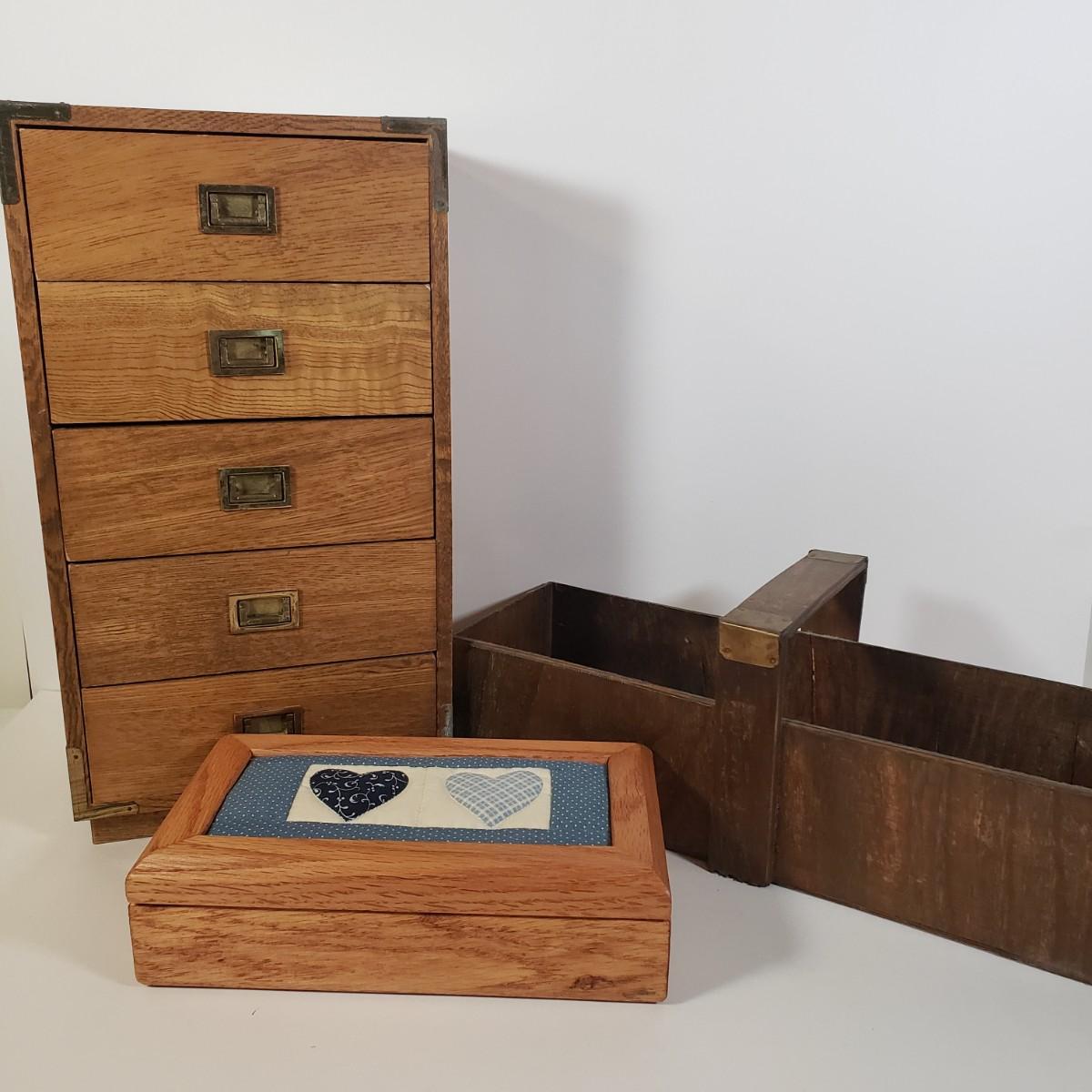 LOT 255L: Tennessee Wood Crafters Jewelry Box, 5 Drawer Jewelry Box & Wooden Box with Handle