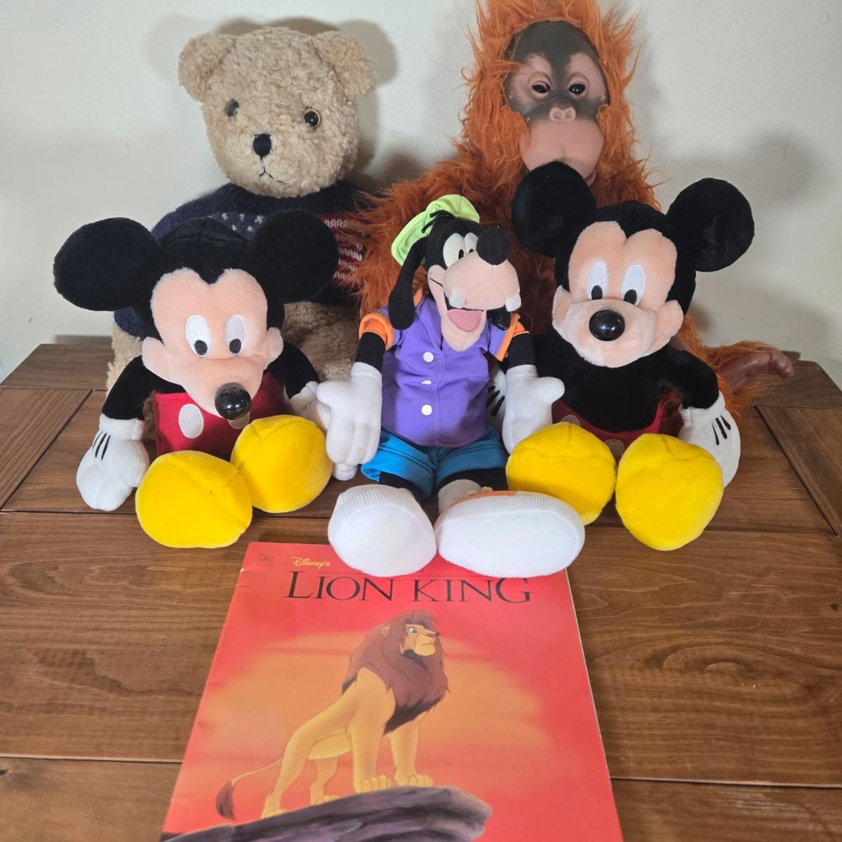 LOT 4A: Senario Interactive Orangutan Plush Toy, TY Beanie Babies Buddy Curly Bear, 2 My Pal Mickey Interactive Plush Toys, and More