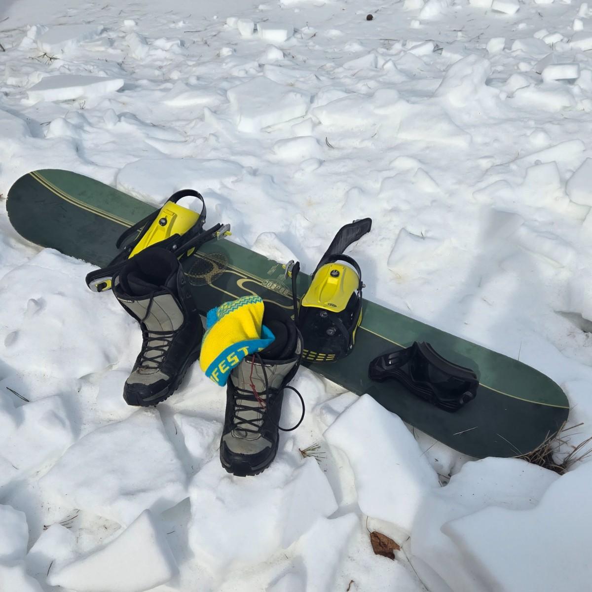 LOT 24F: Snowboard, Boots, Goggles, and Hat