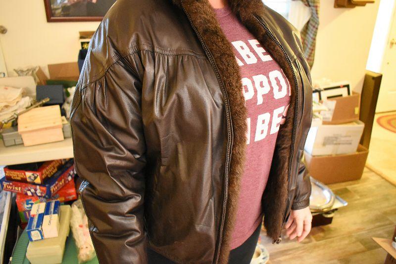 Lot 1204: Rabbit and Leather Coat - Women's Small