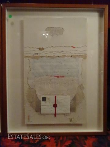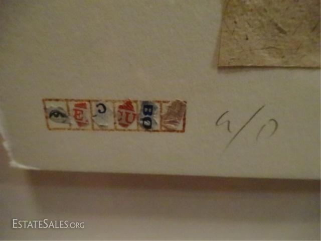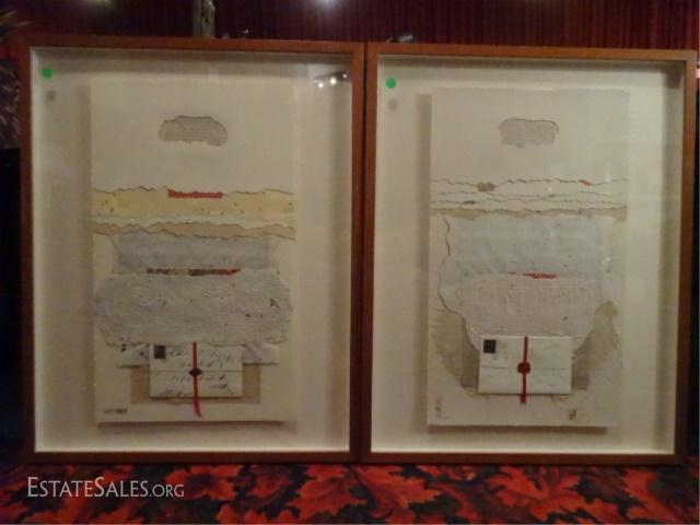 LOT 120A: 2 RICARDO BENAIM (VENEZUELAN, b.1949) MIXED MEDIA COLLAGES, LIMITED EDITION ARTIST PROOFS, PENCIL SIGNED "BENJAMIN" LOWER RIGHT AND A/P LOWER LEFT, EXCELLENT CONDITION, FRAMED SIZE 29" X 23.25, SKU017.01
