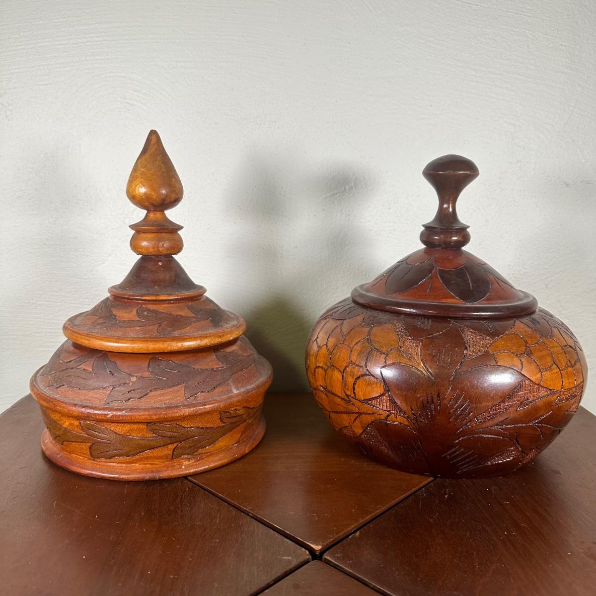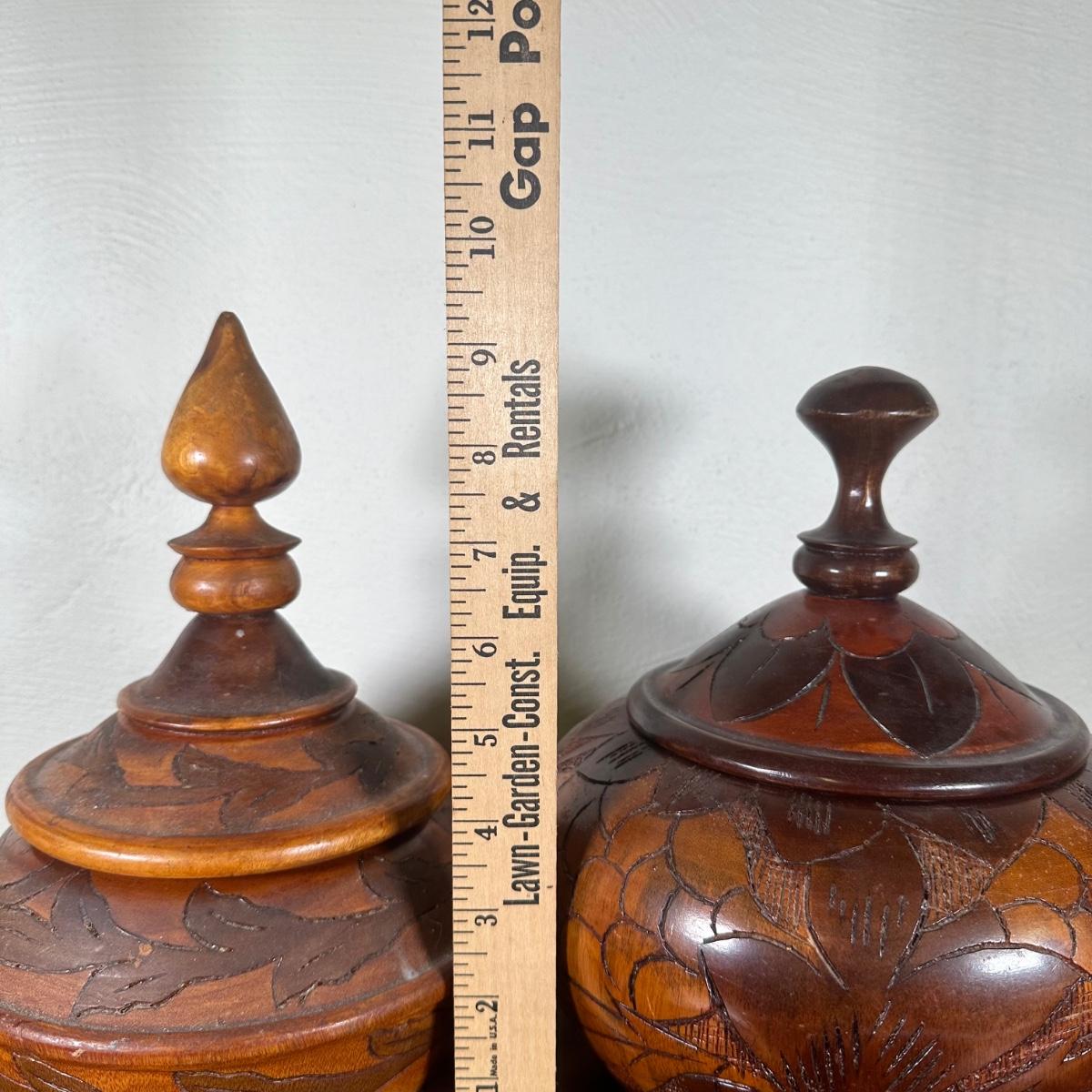 LOT 120B: Pair of vintage wooden turned wood urns/jars