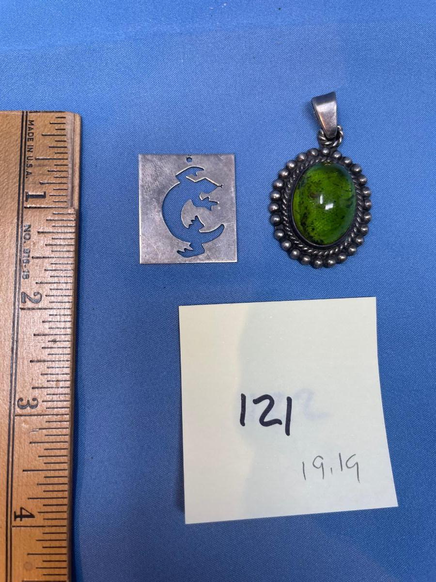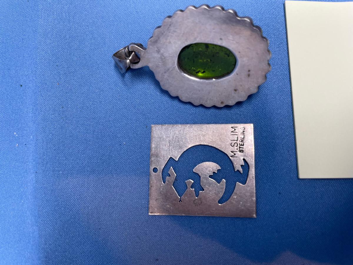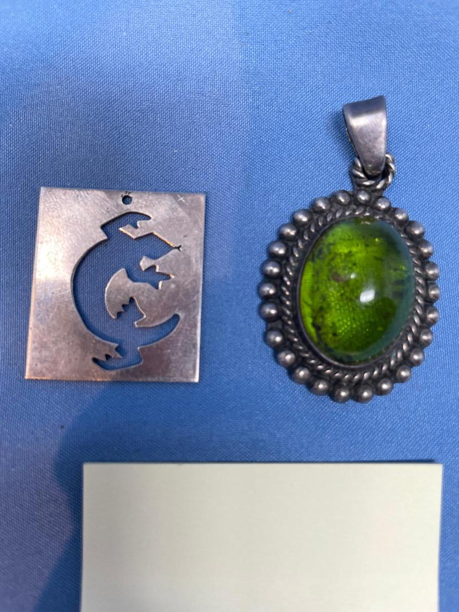 M. Slim salamander sterling piece. Green Apple Amber pendant. Both in great shape! 19.1 grams total weight.